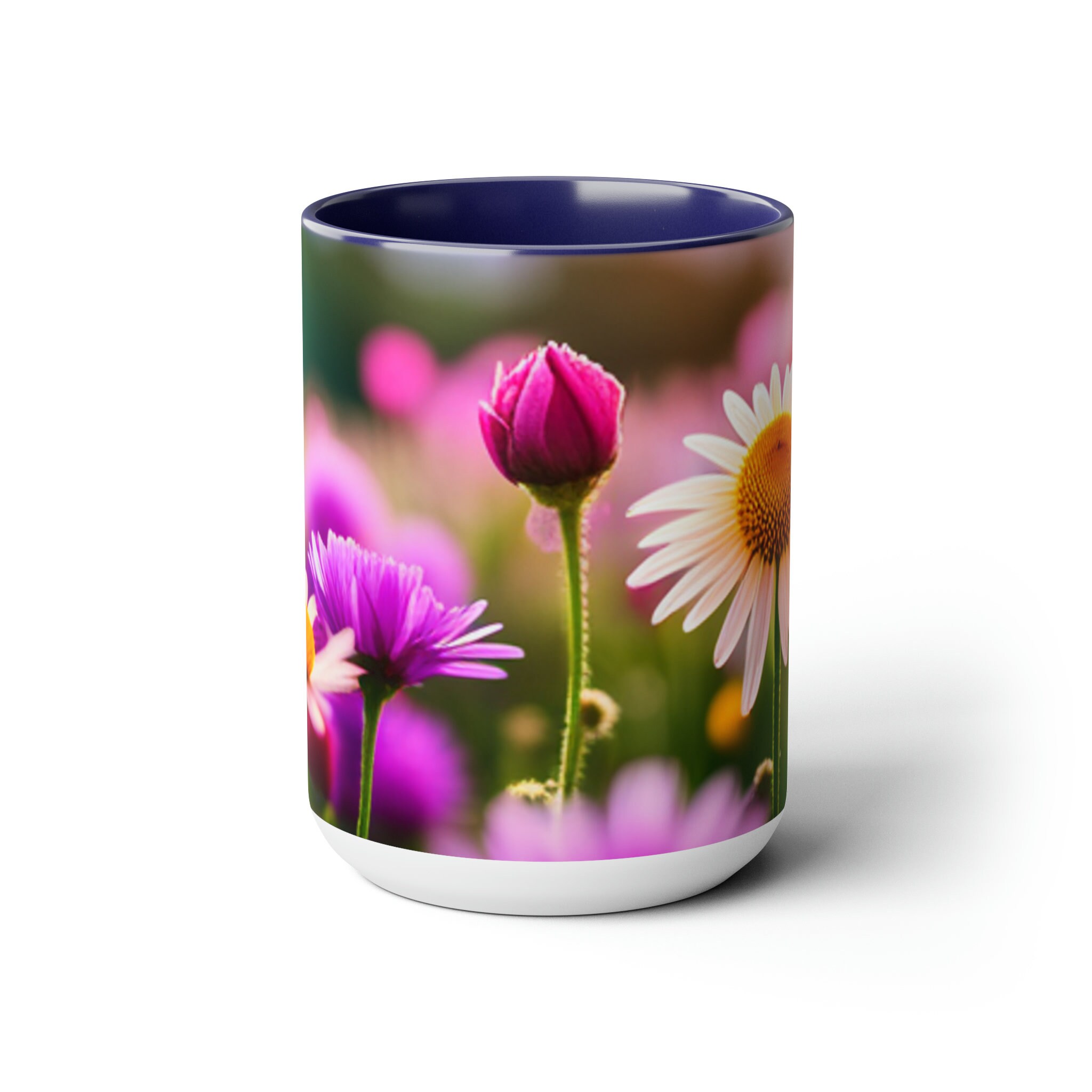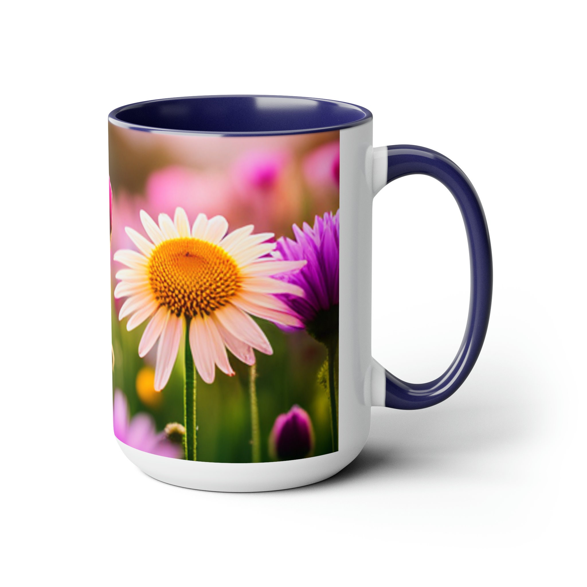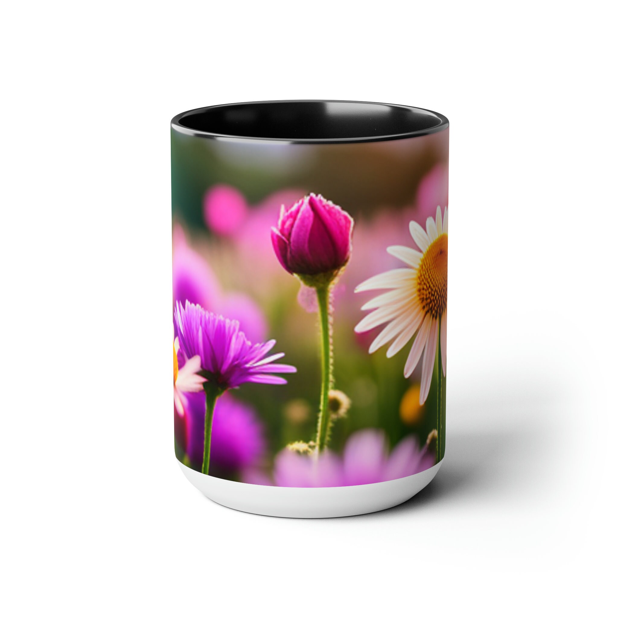 Flowers Two-Tone Coffee Mugs, 15oz