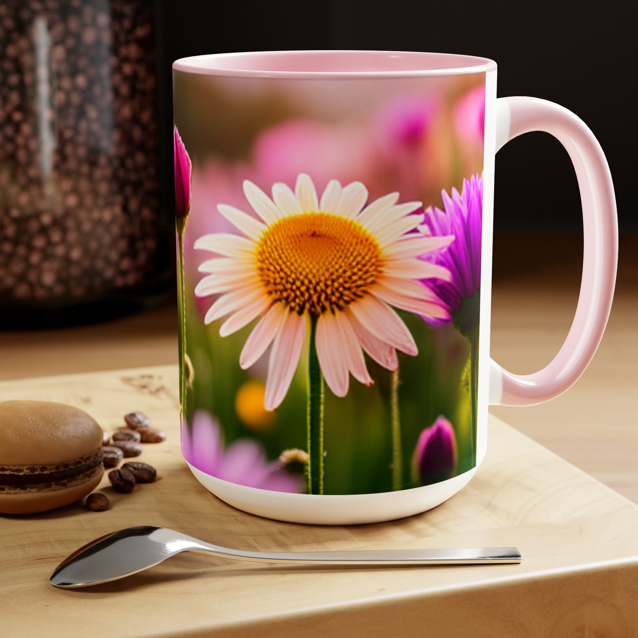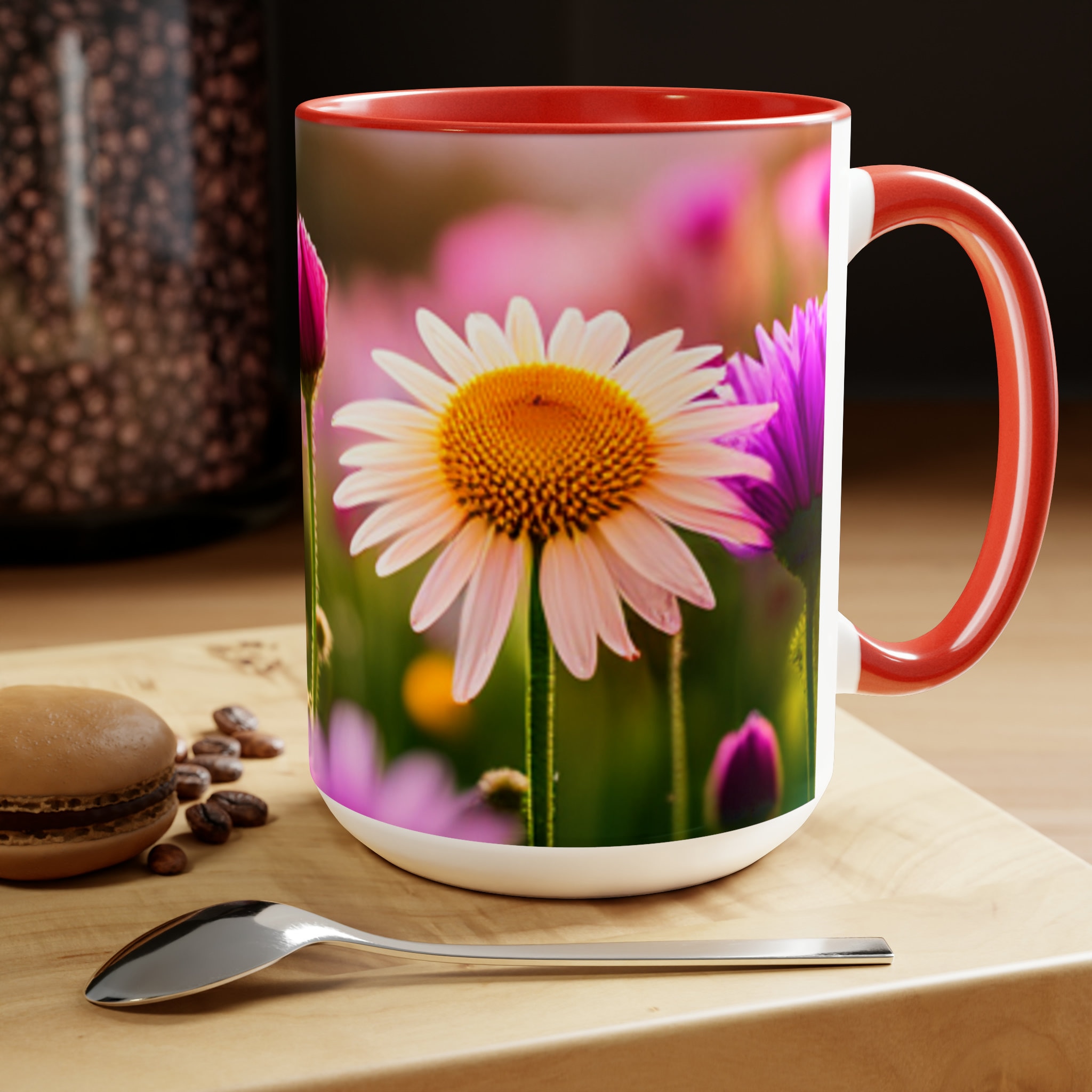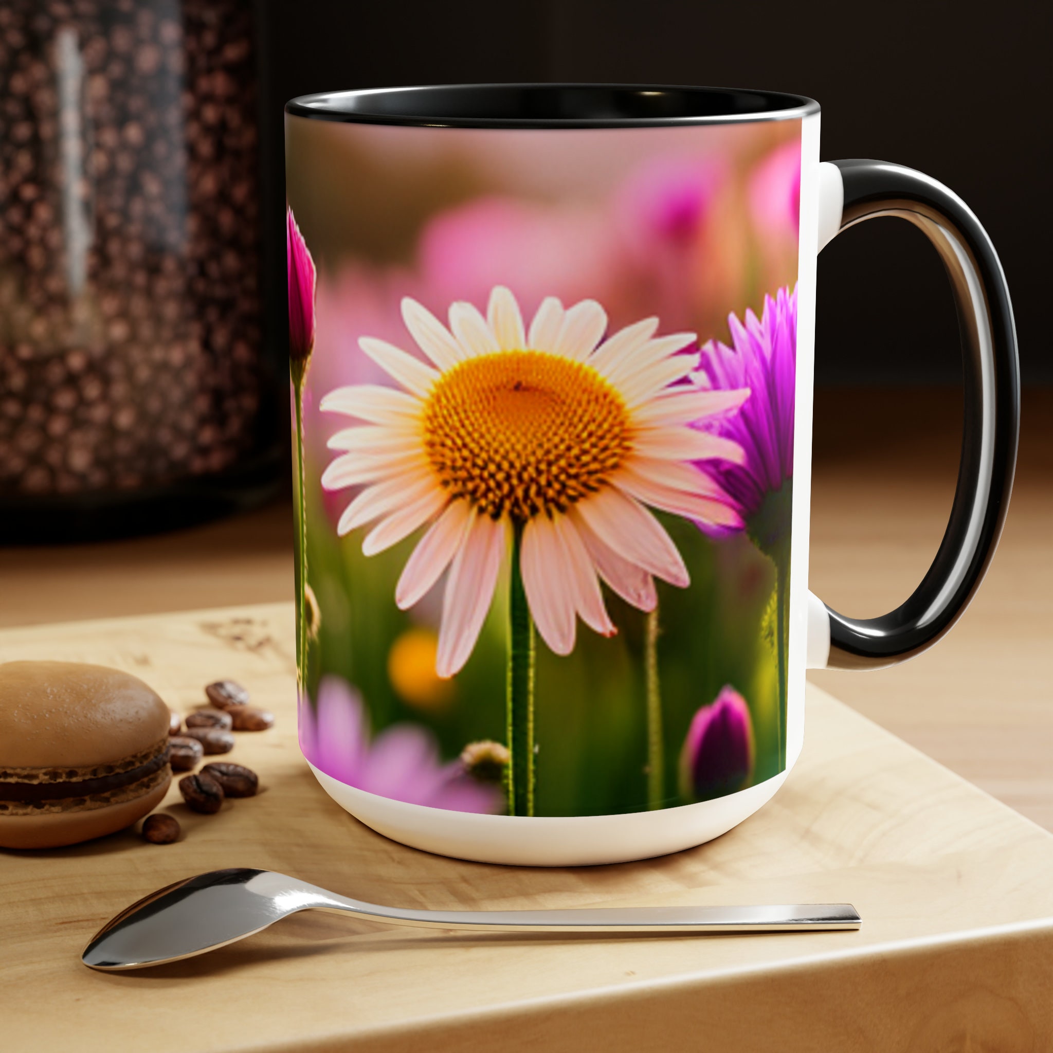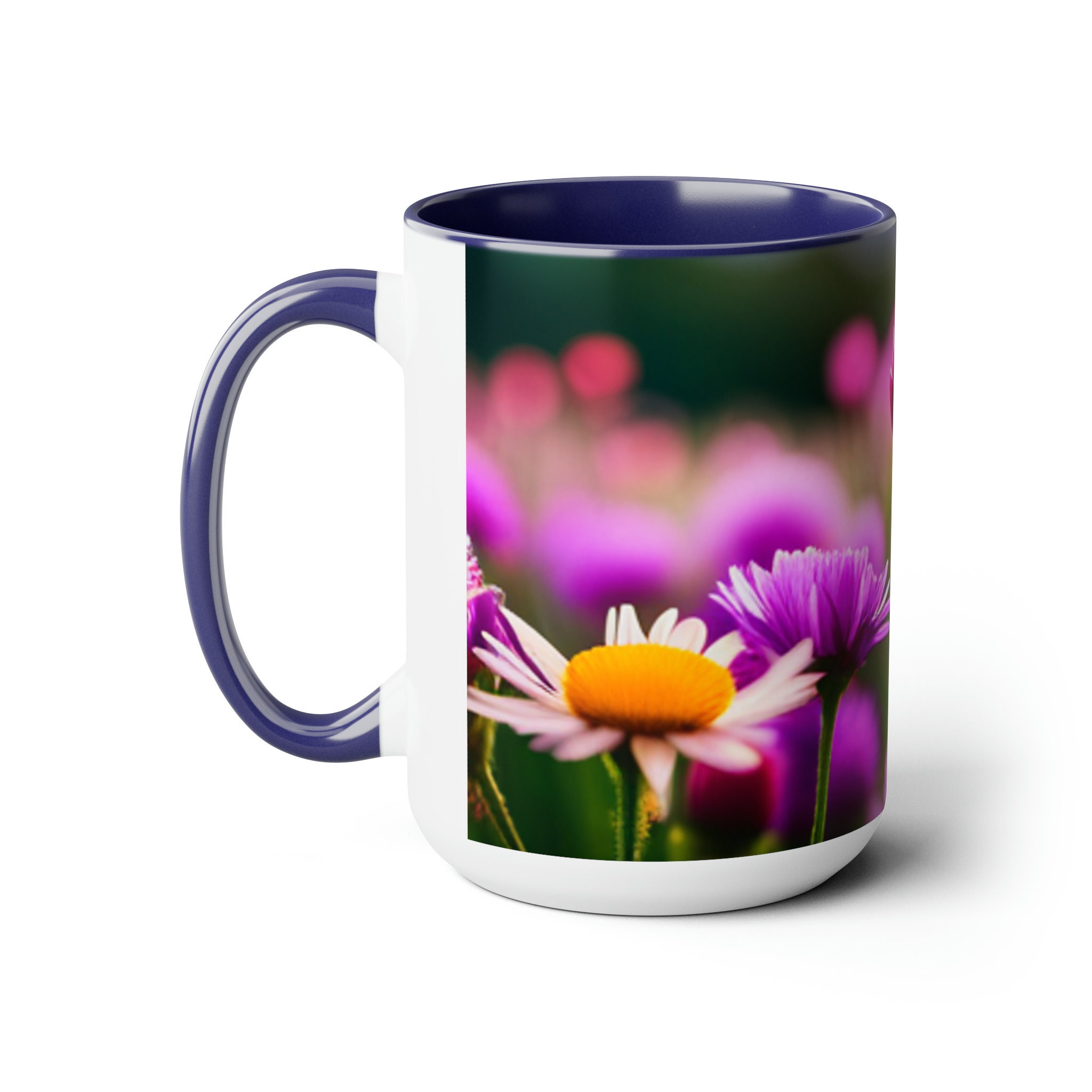 Flowers Two-Tone Coffee Mugs, 15oz