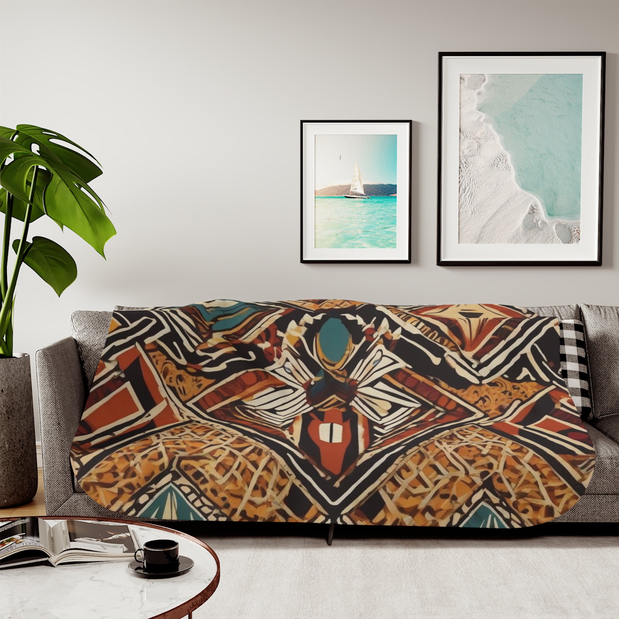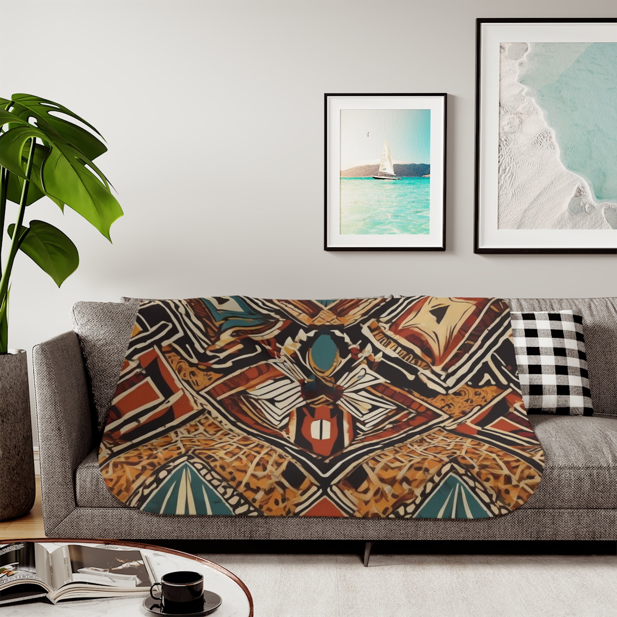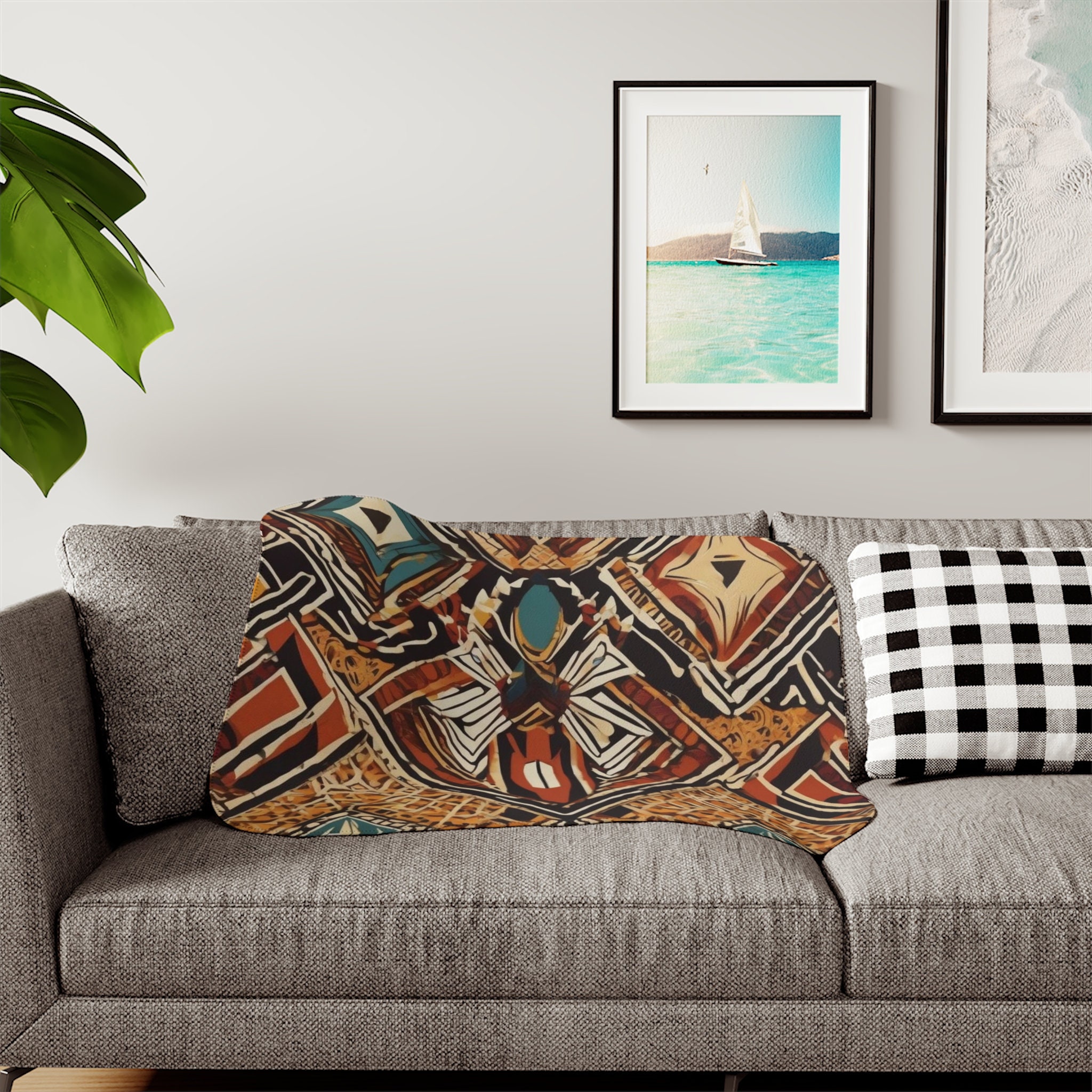 African Print Sherpa Throw Blanket, Cozy Lap Blanket
