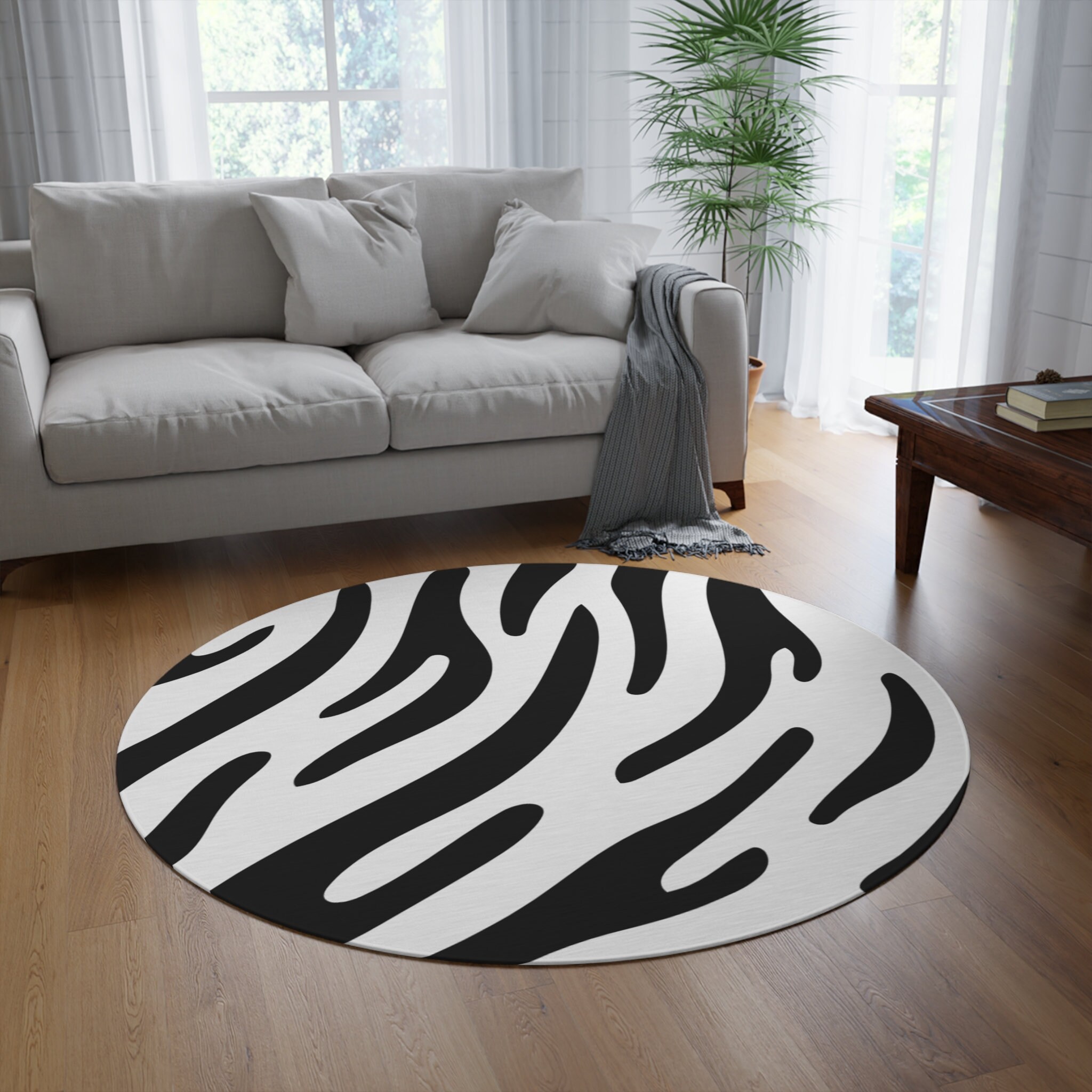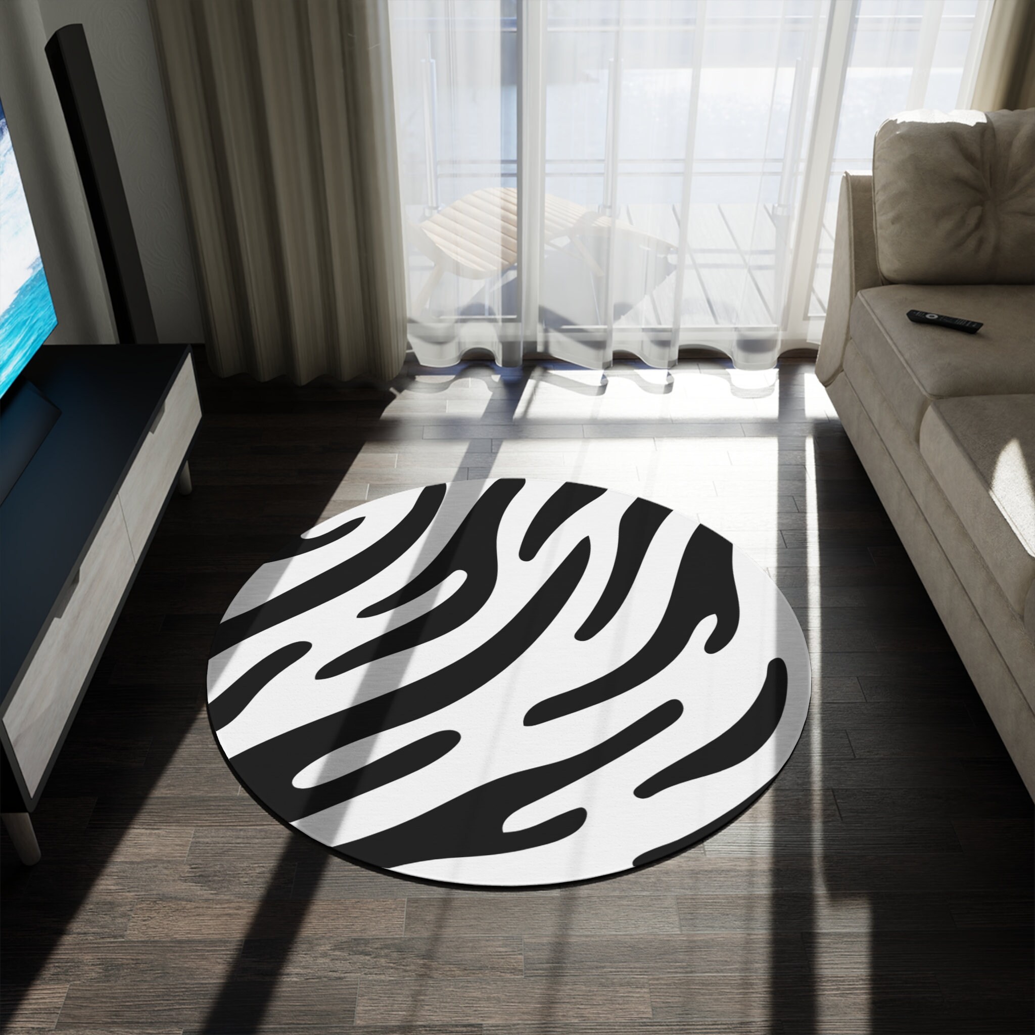Zebra Print Round Rug - Black and White Animal Pattern, 60 inch