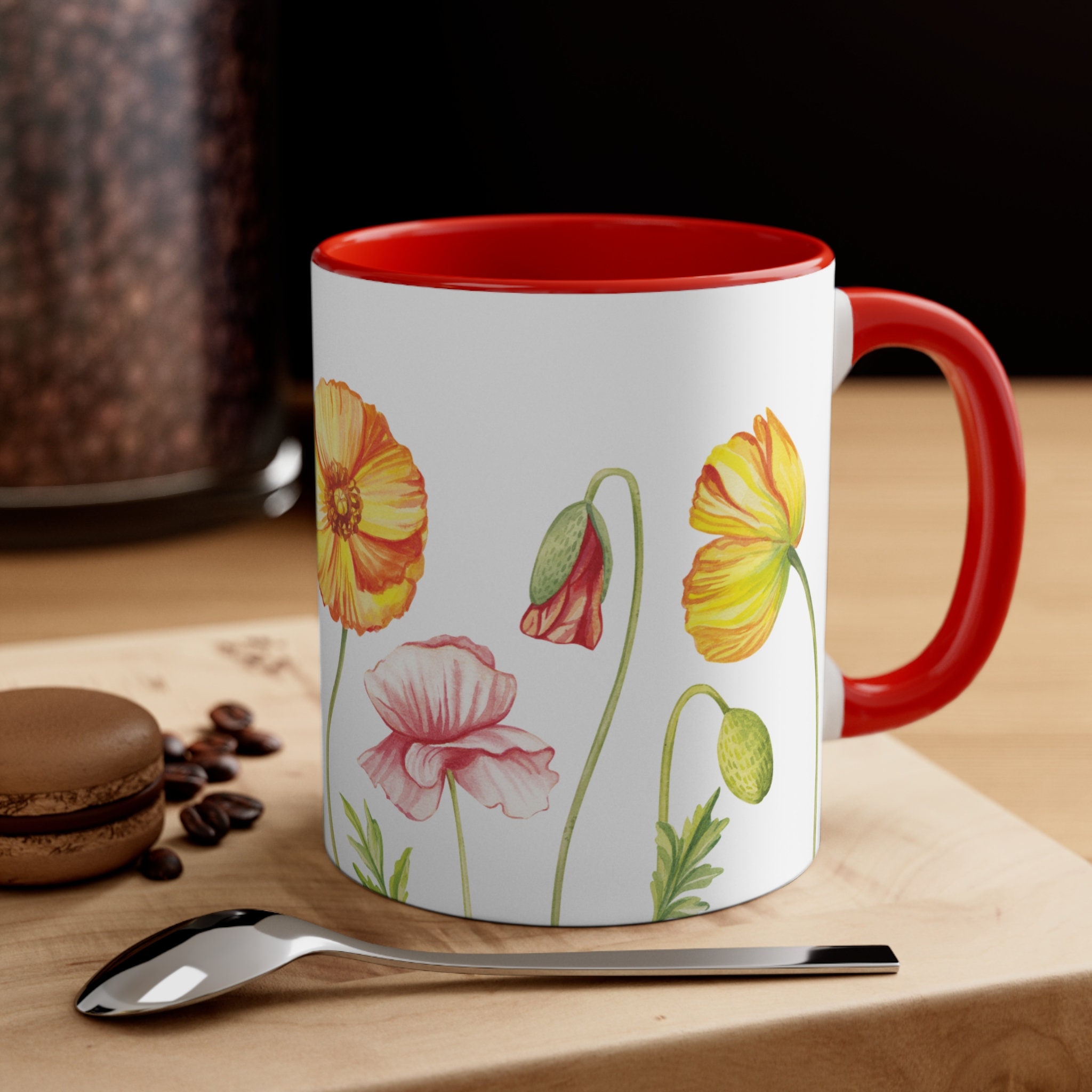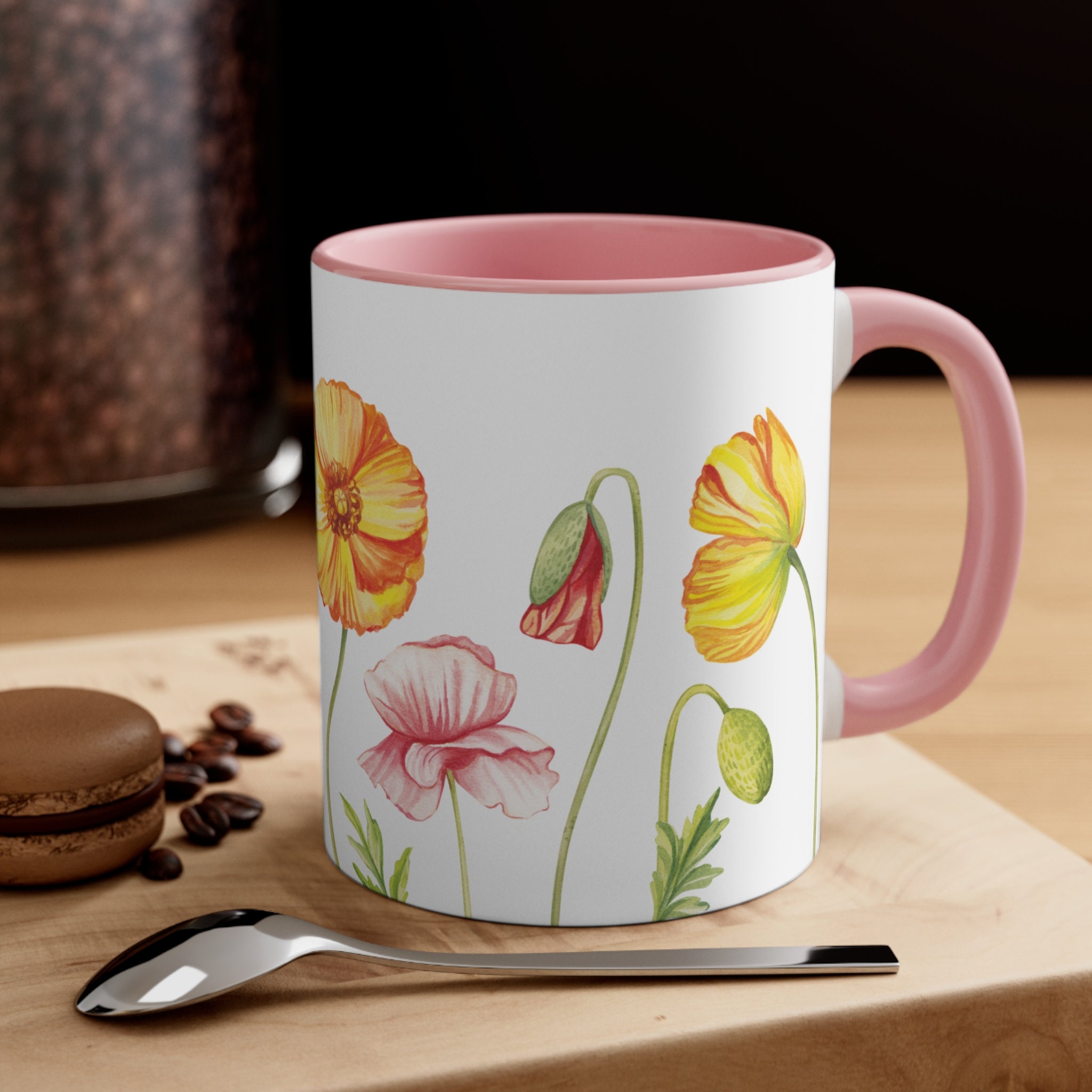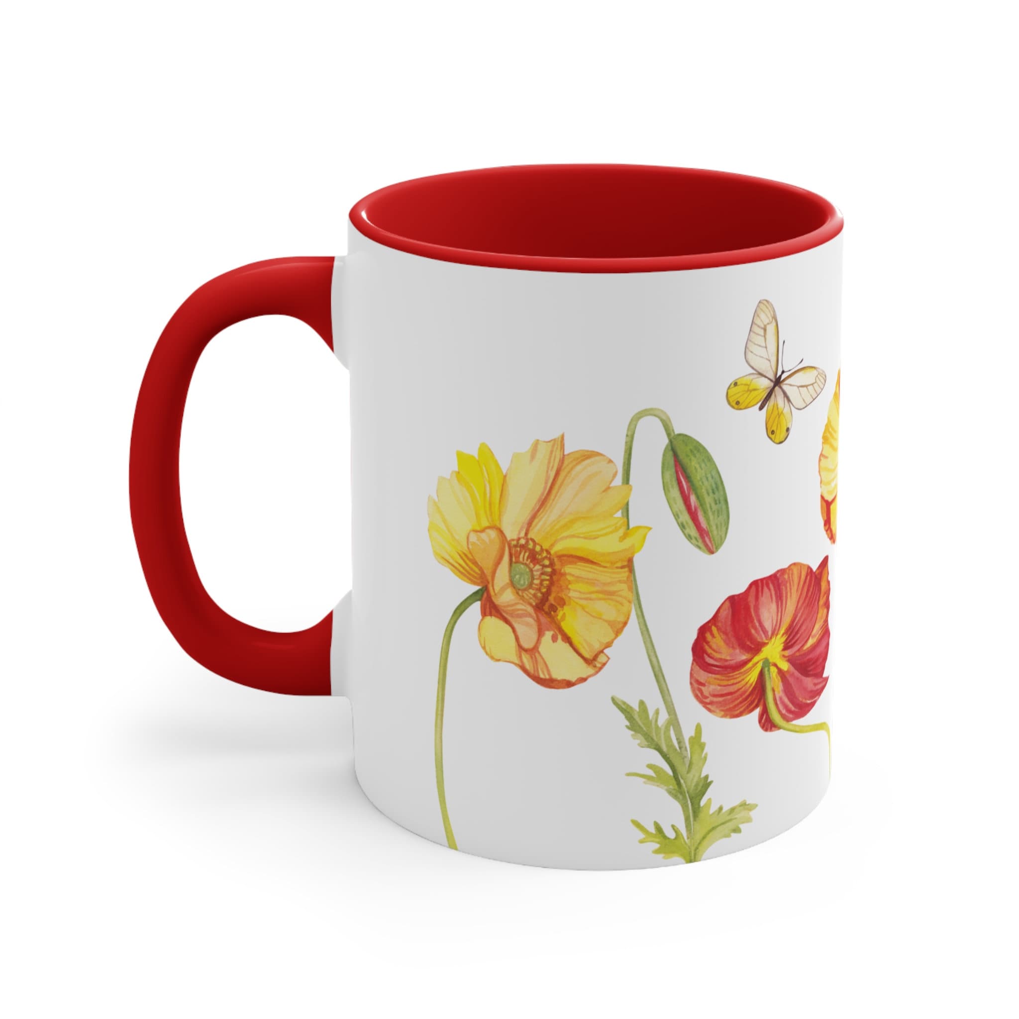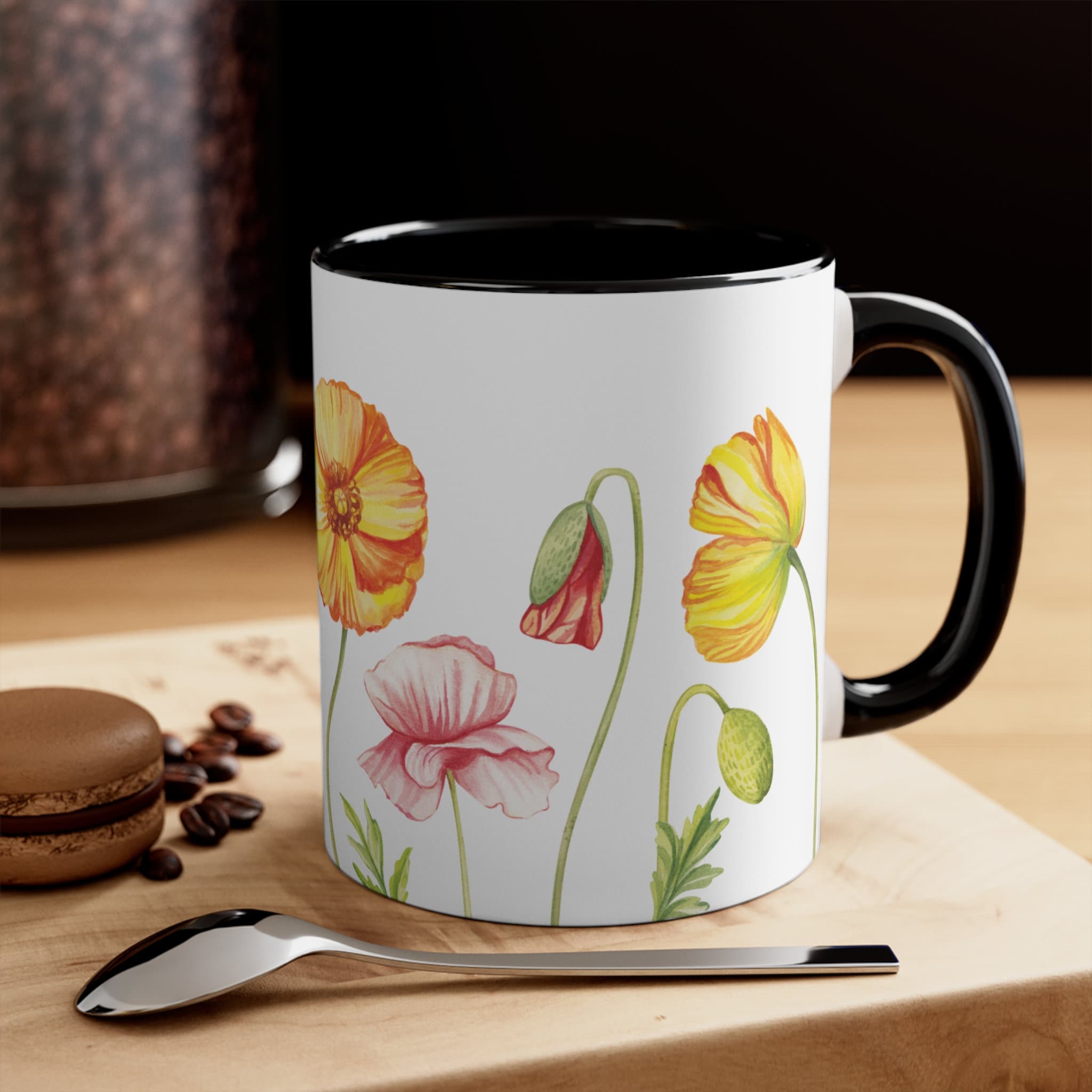 Add some color to your routine with this two-tone, custom accent coffee mug. This 11oz mug features an accented C-Handle that is comfortable to use, as well as an accented interior to add more contrast and character. With your design on this mug, you get an instant winner of a product.