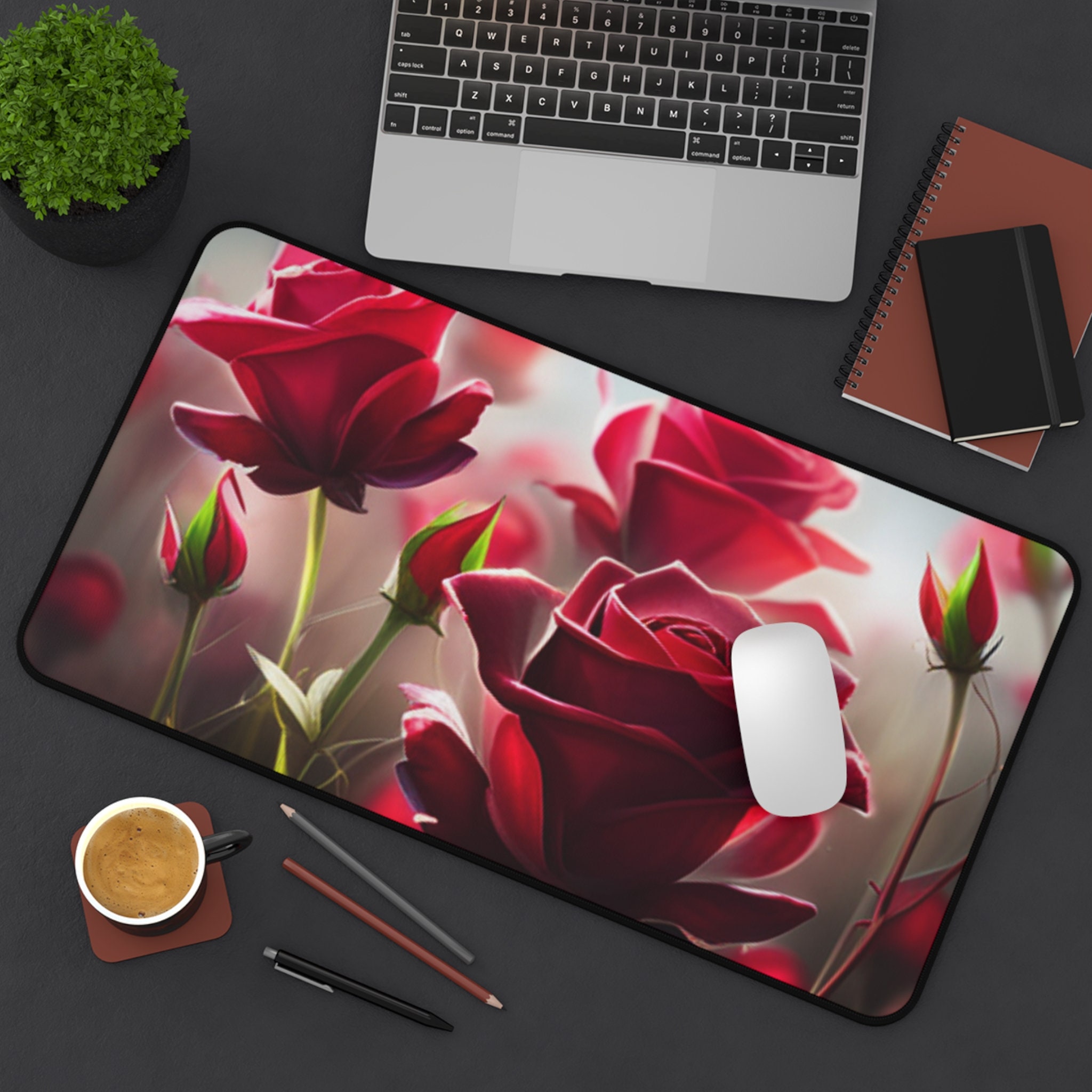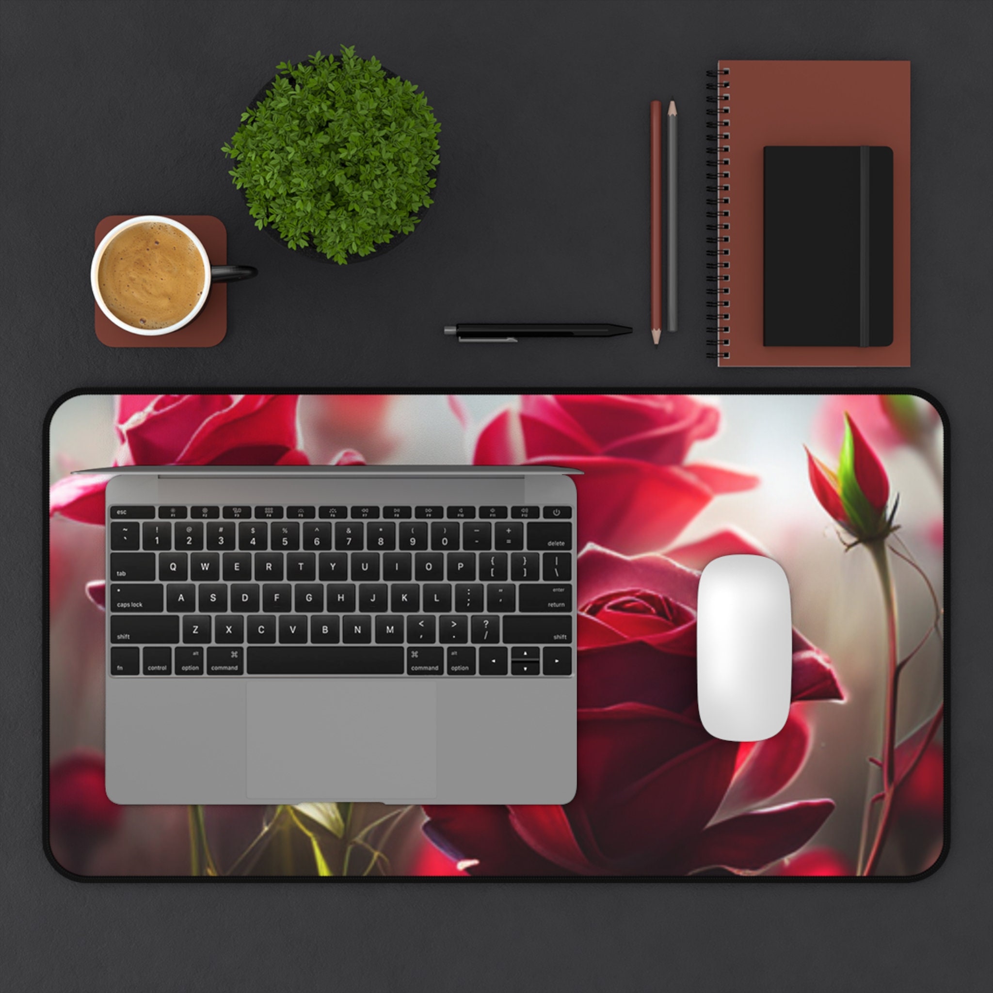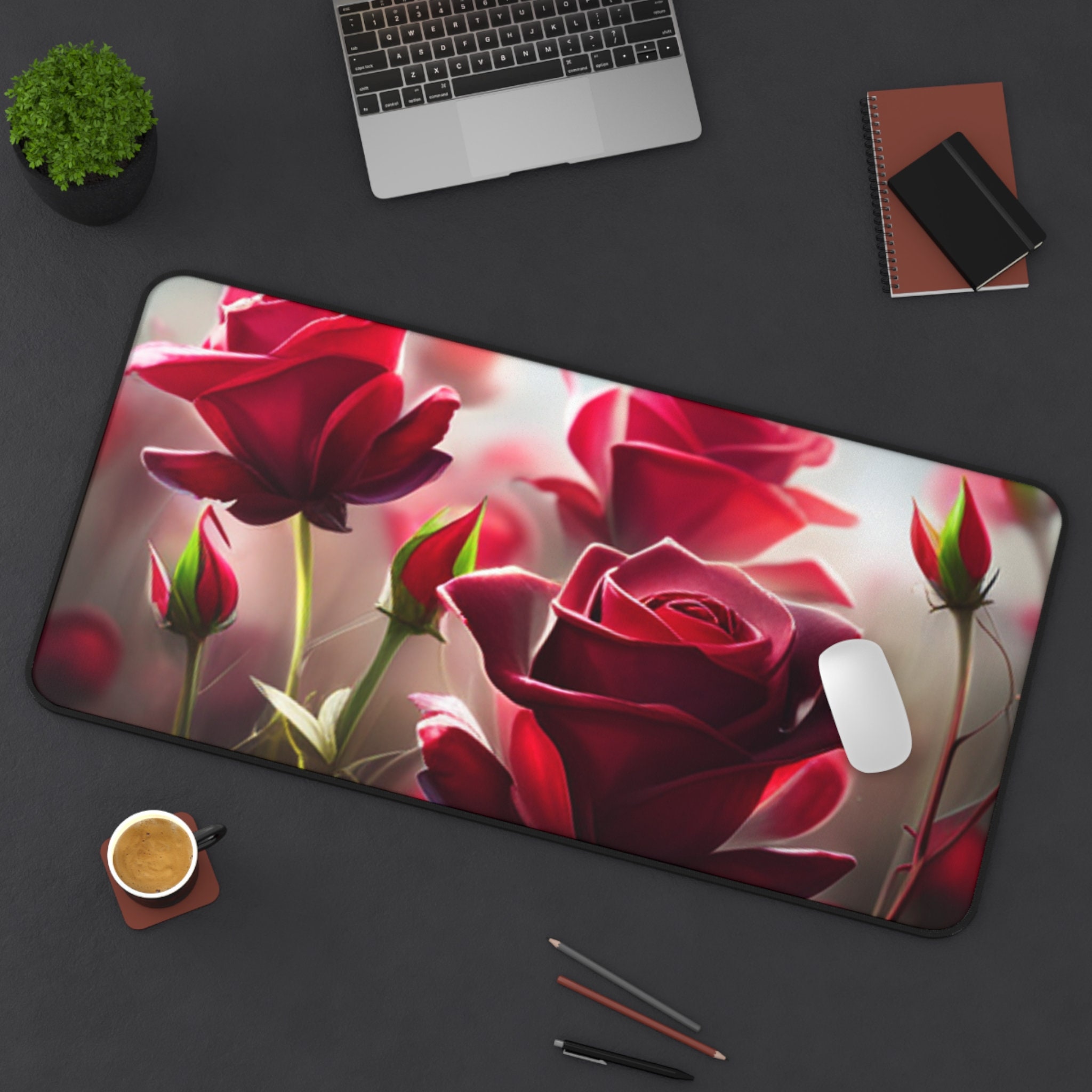 Roses Desk Mat red computer accessories, office decor, mouse pad, floral theme pattern