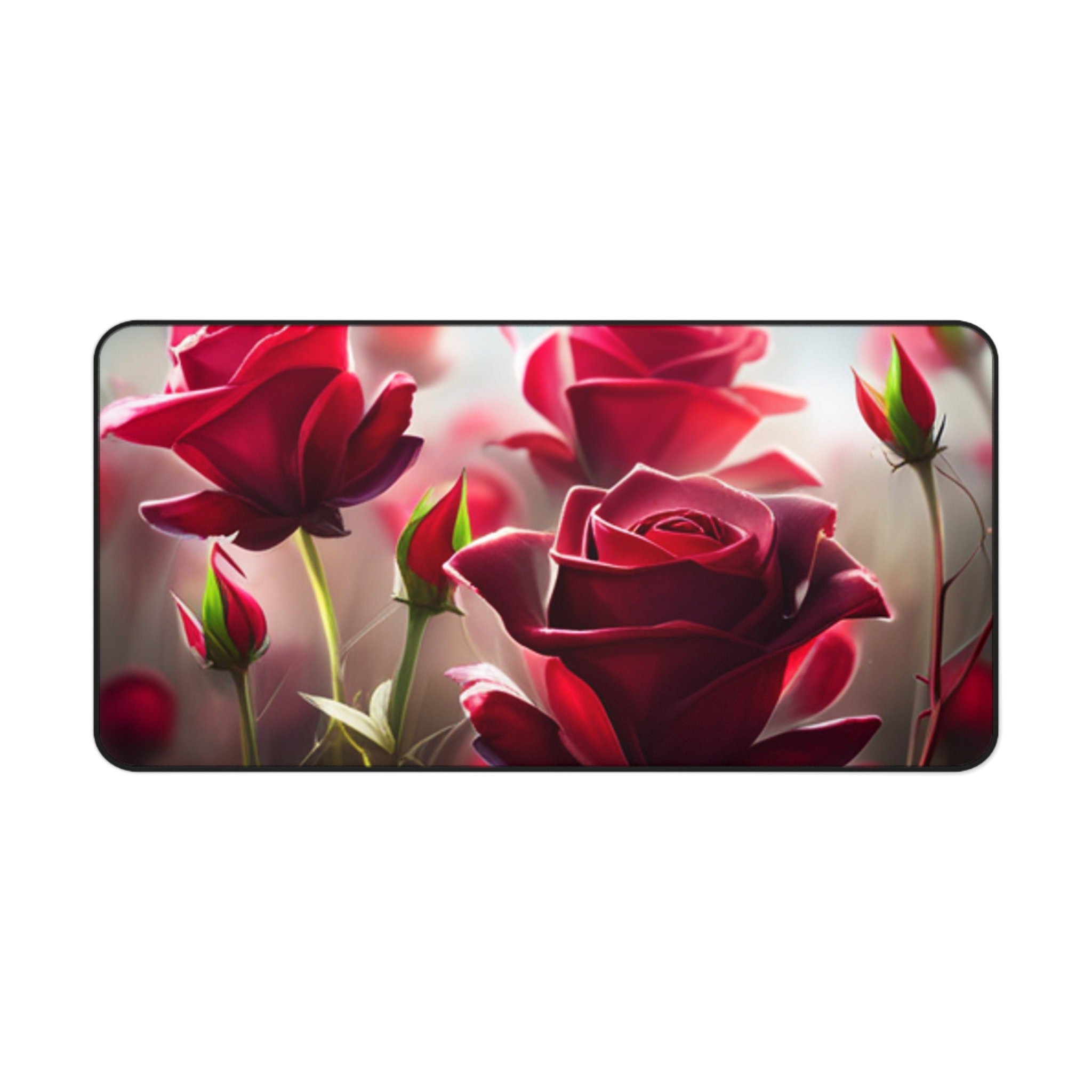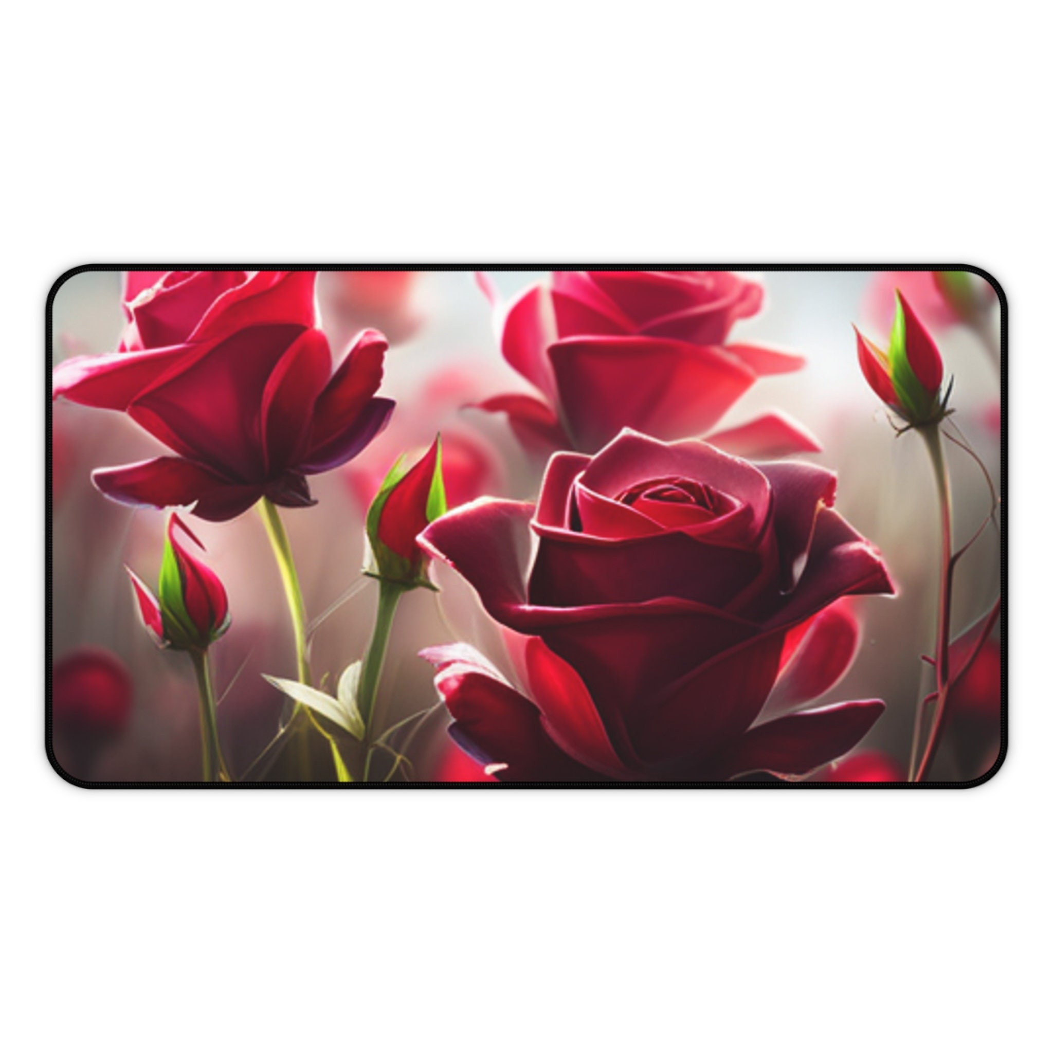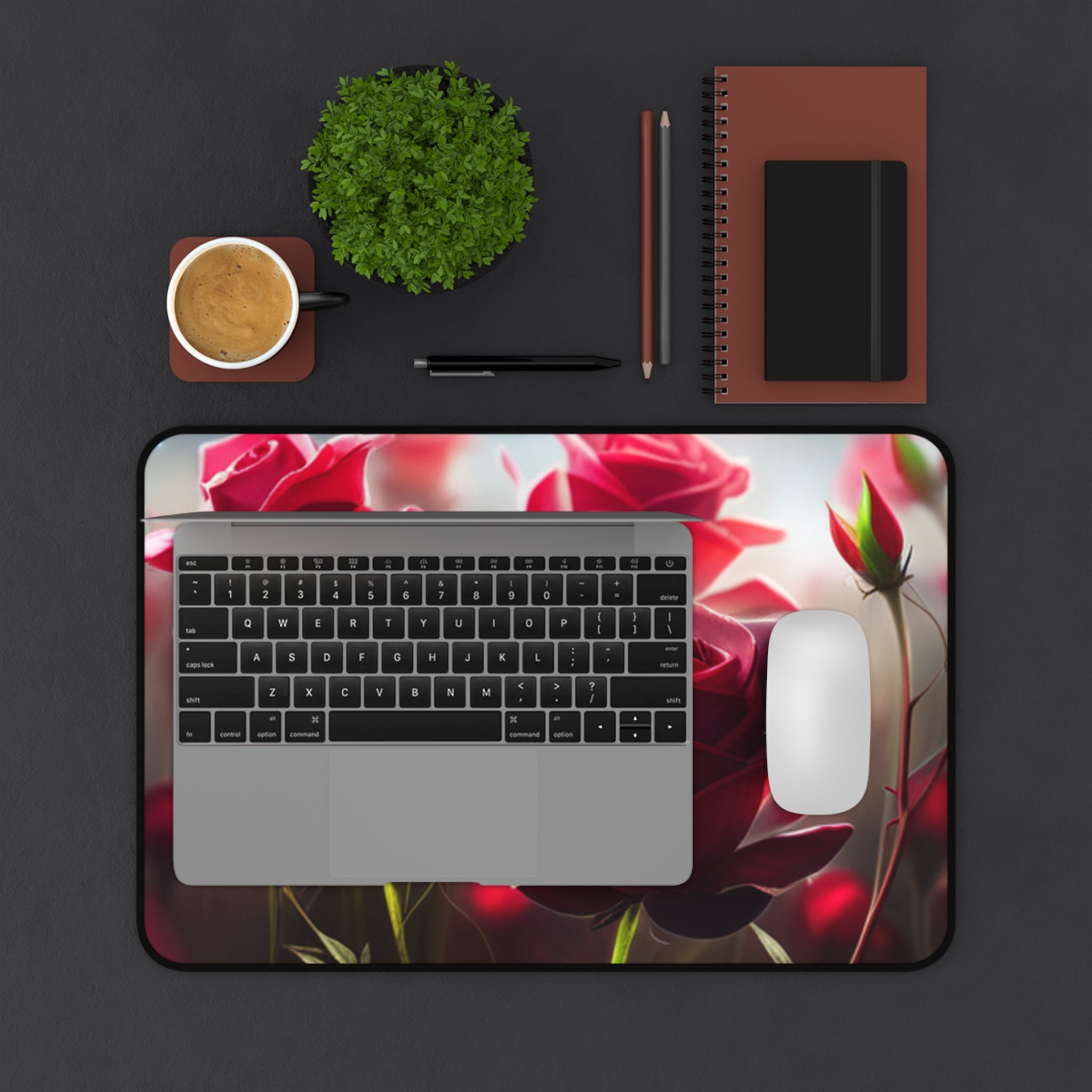 Roses Desk Mat red computer accessories, office decor, mouse pad, floral theme pattern