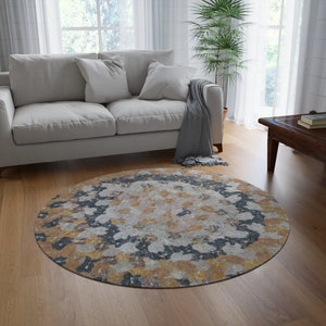 Decorative rugs with fun, bright designs have made a huge comeback. Create a stunning design with graphics or funky characters, and print them on this round 100% polyester chenille rug in picture-perfect quality. It features a coated backing and hemmed edges for durability.