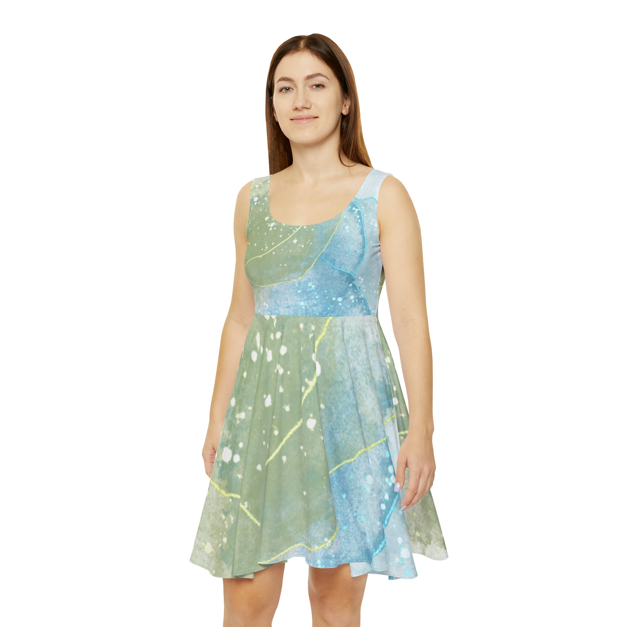 Bluegreen Womens Skater Dress AOP women dress dress for women dresses for women dress sleeveless dress summer dress womens dress flare dress