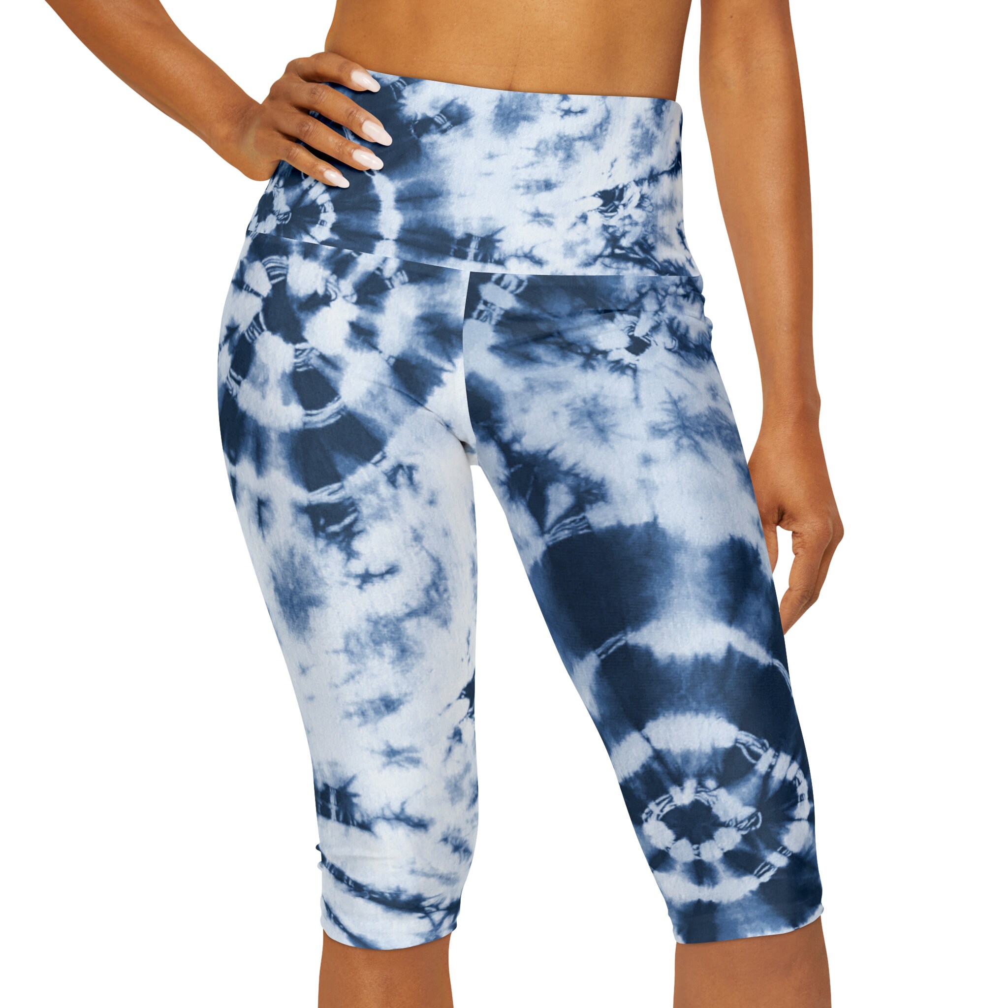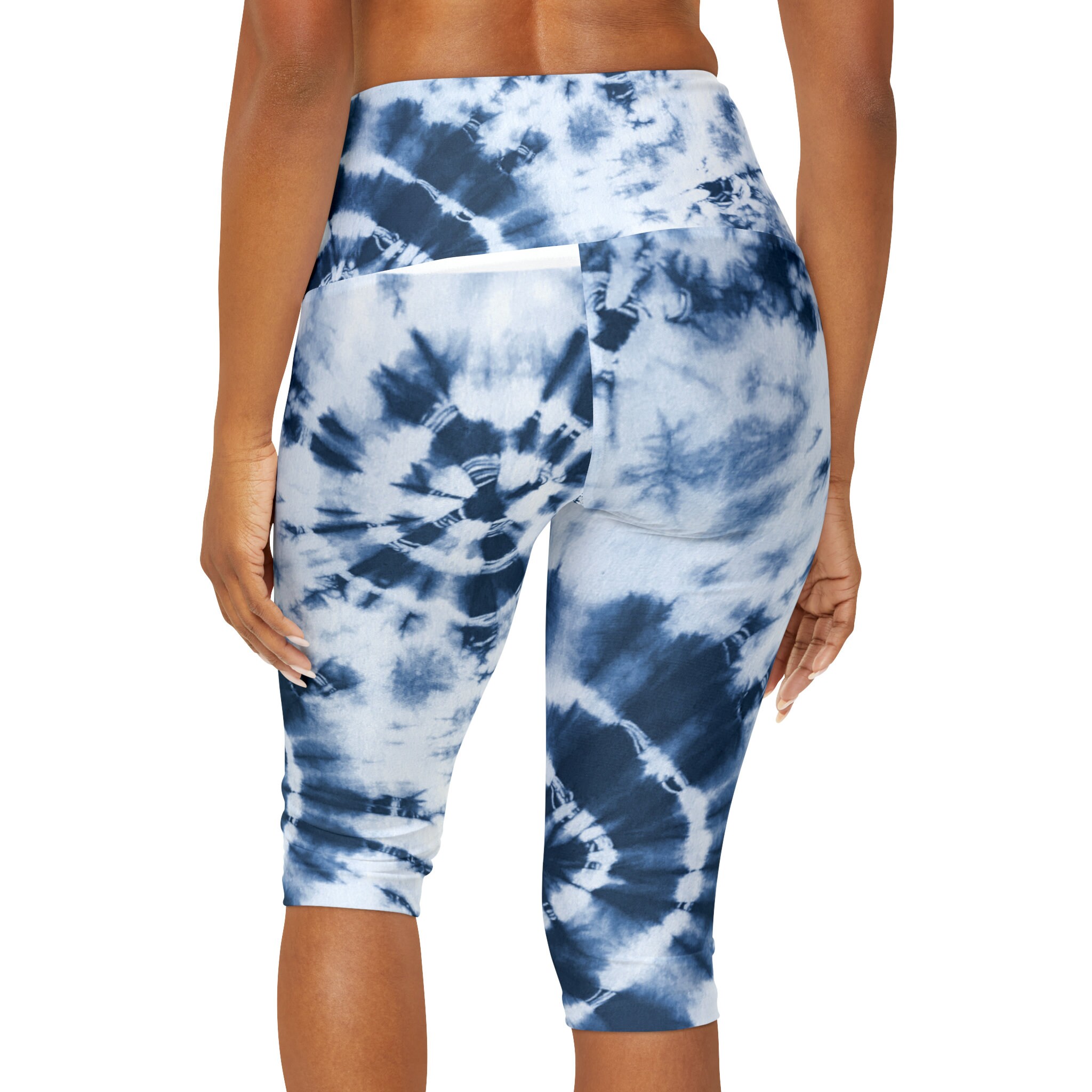 Blue Tie Die Yoga Capri Leggings (AOP)