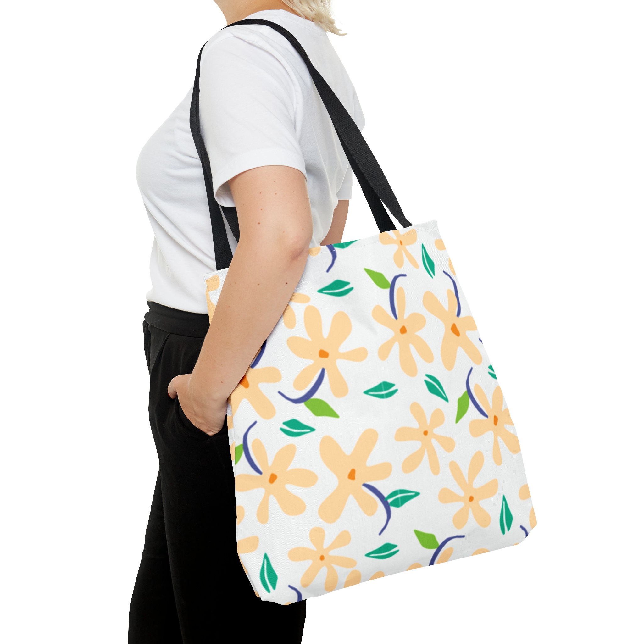 Available in 3 sizes to add both functionality and style, these custom-printed tote bags come with multiple handle colors to match your designs. Made with spun polyester, these bags feature double-stitched seams, cotton webbing straps, and nonwoven laminate lining for high-end durability. Your all-over print is created with dye sublimation for high-end visuals.