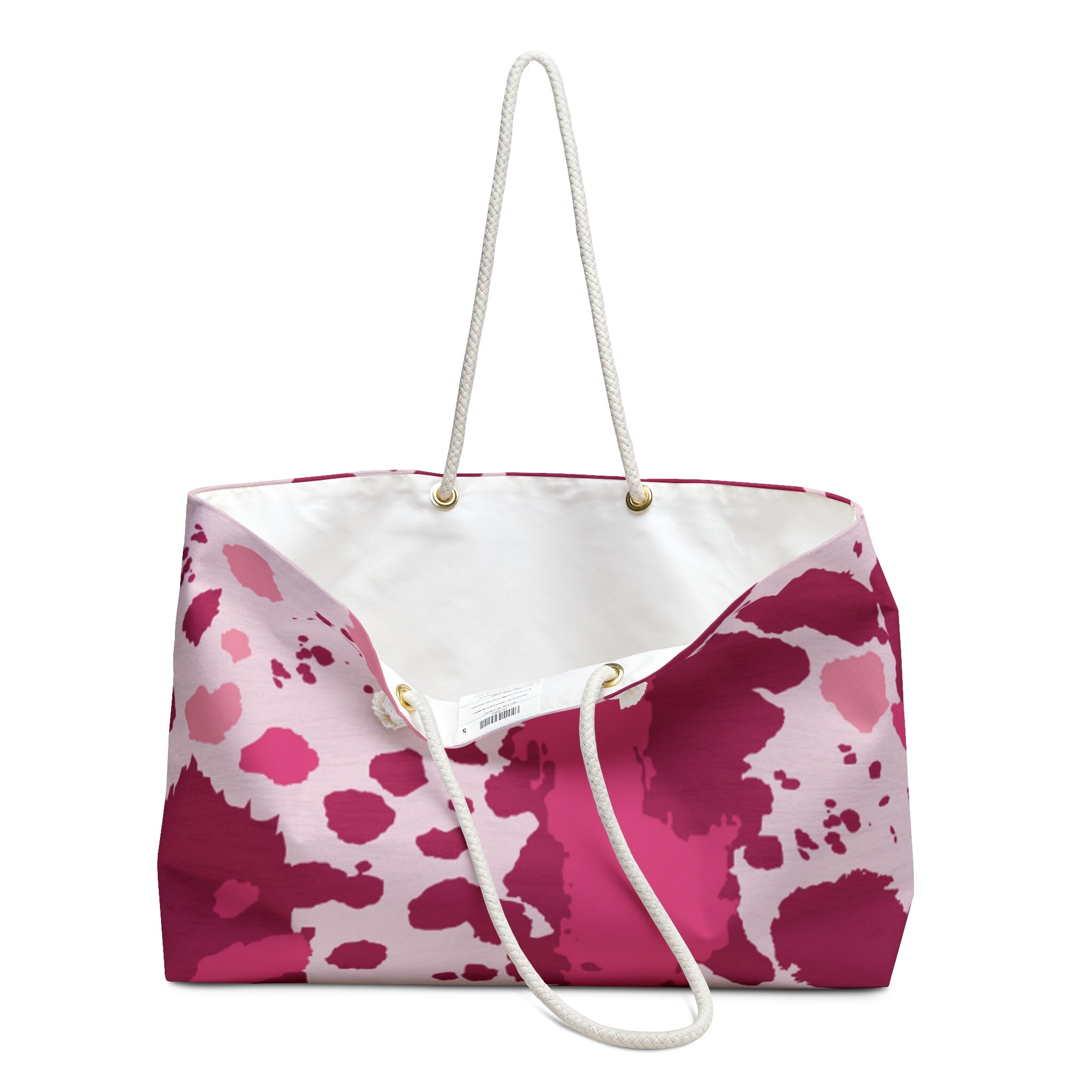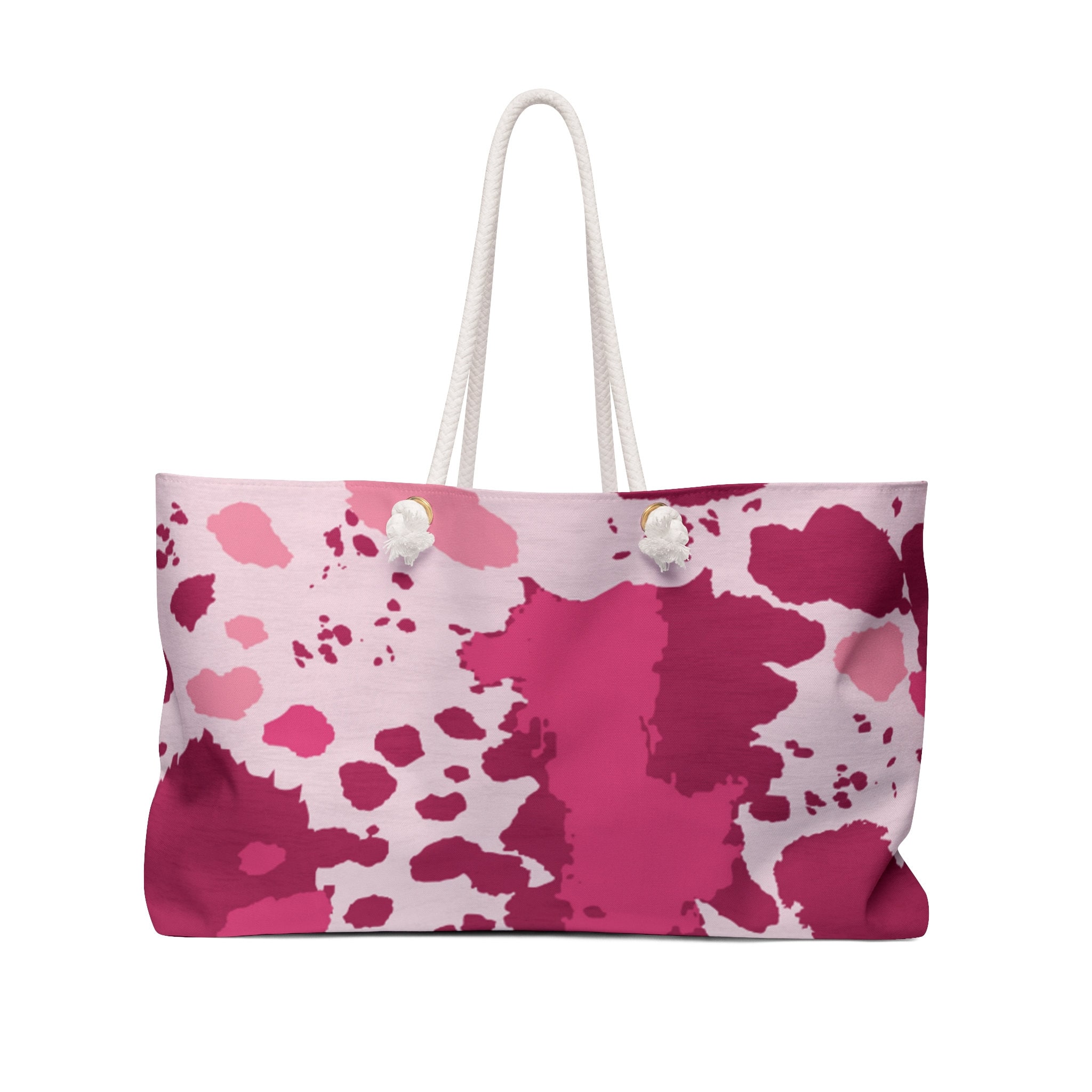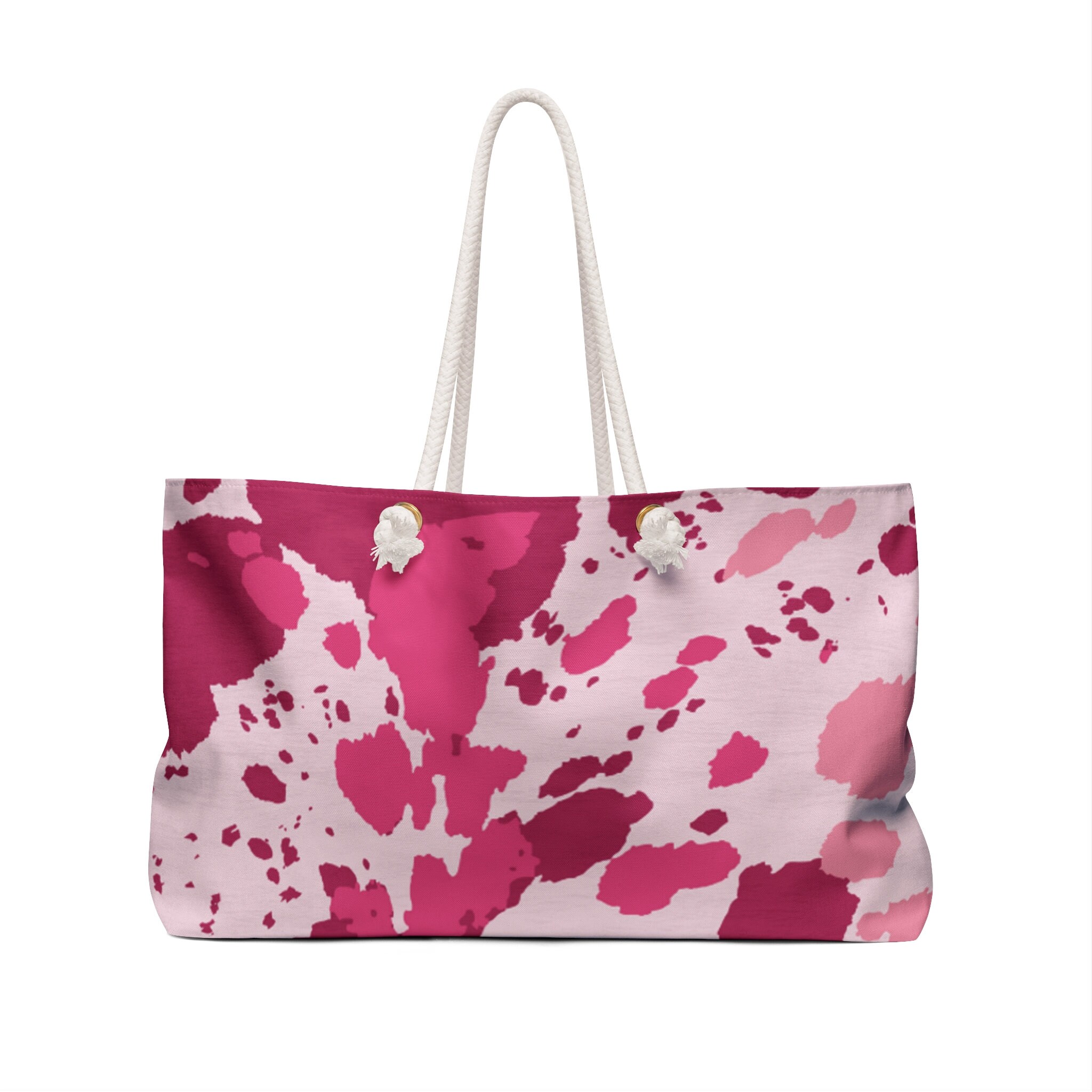 Pink Paint Splatter Weekender Tote Bag, Beach Travel Bag