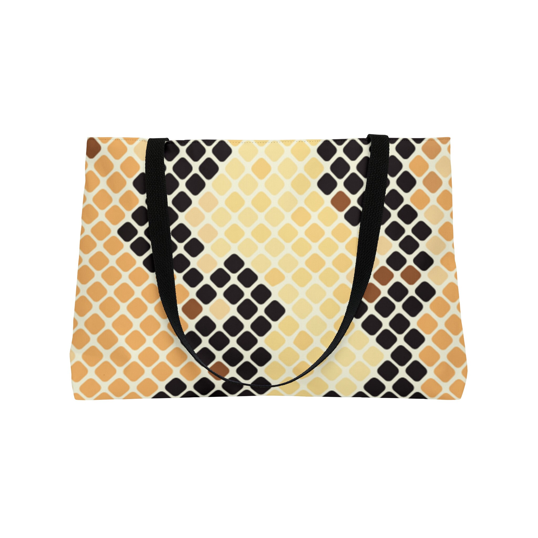 This personalized weekender bag comes in one size – 24" x 13" (60.9 cm x 33 cm) – perfect for those who love to travel light. Its t-bottom construction and black handles give it a sleek, classic look. Start designing, and we'll print your art on the 100% spun polyester in vibrant colors. .: 100% Spun Polyester .: One size: 24" x 13" (60.9 cm x 33 cm) .: Black interior lining .: T-bottom construction .: All-over print .: Assembled in the USA from globally sourced parts .: NB! Size tolerance 0.75" (1.9 cm))