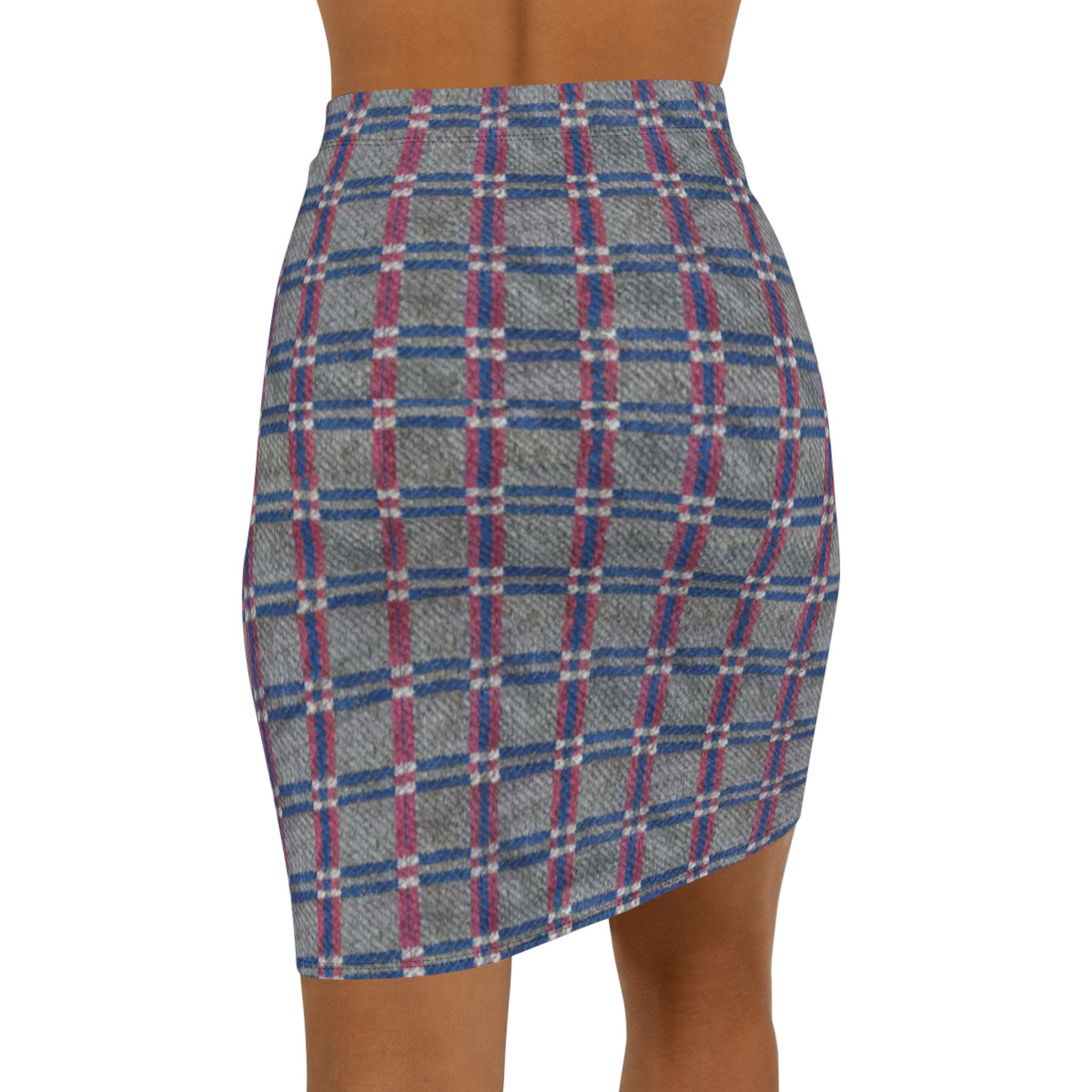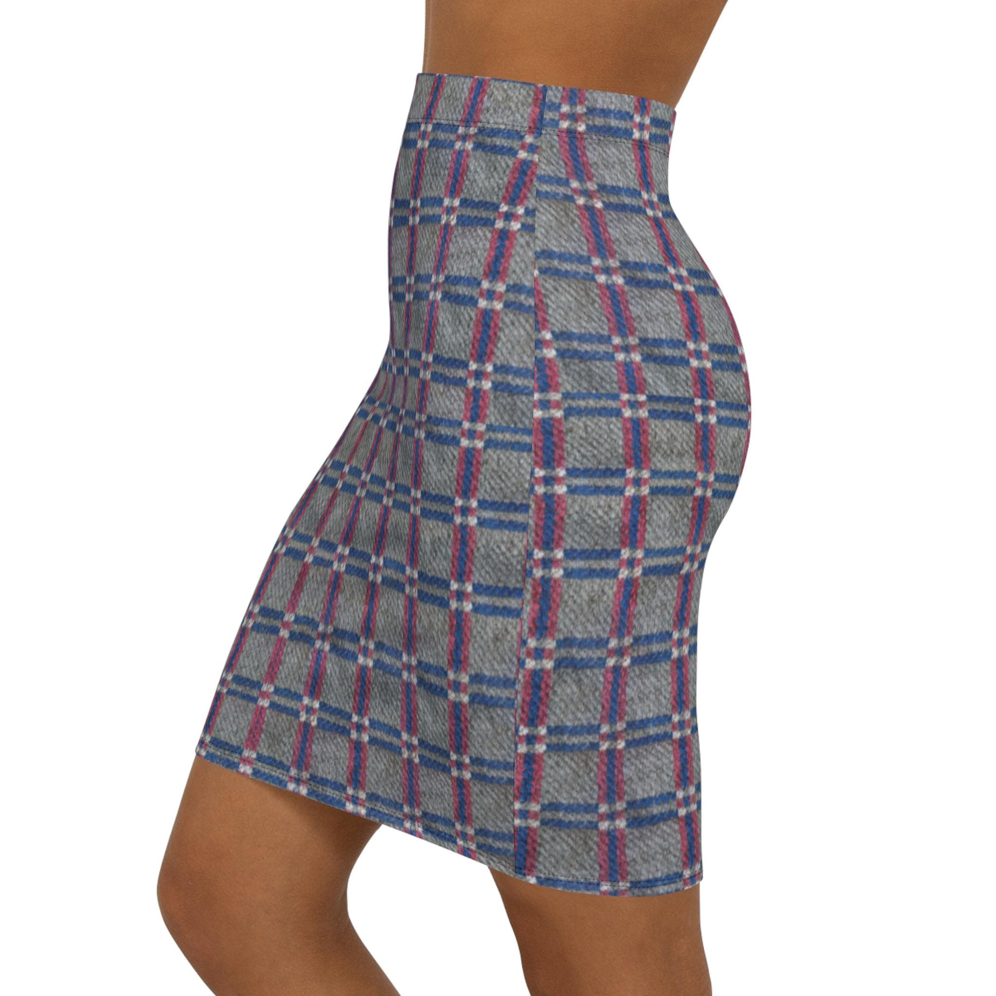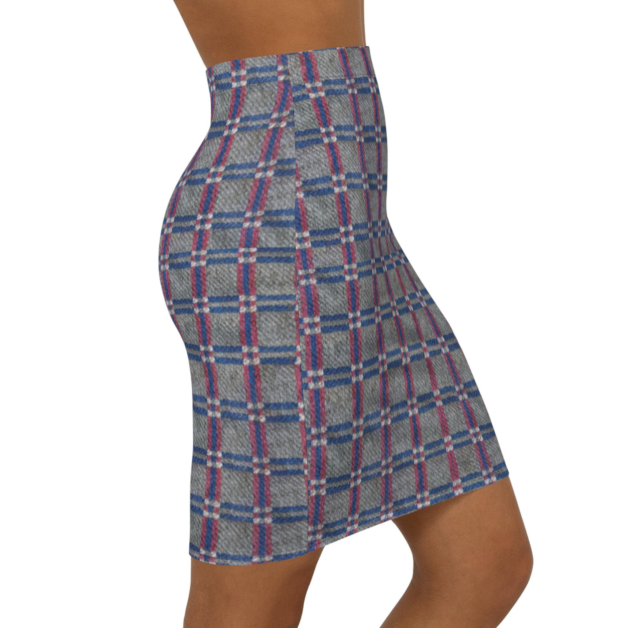 This mid-waist pencil skirt brings quiet confidence to everyday styling. The soft, stretchy fabric hugs curves without constriction, while an all-over muted plaid in slate blue and mauve gives a lived-in, textured look — like a favorite scarf translated into a clean, modern silhouette. Wear it with a tucked knit for coffee runs, layered tights and boots for chillier days, or a tailored blazer when you want your outfit to read composed but approachable. The elastic waistband makes getting ready simple, and the slim mid-waist cut keeps the line polished and flattering.