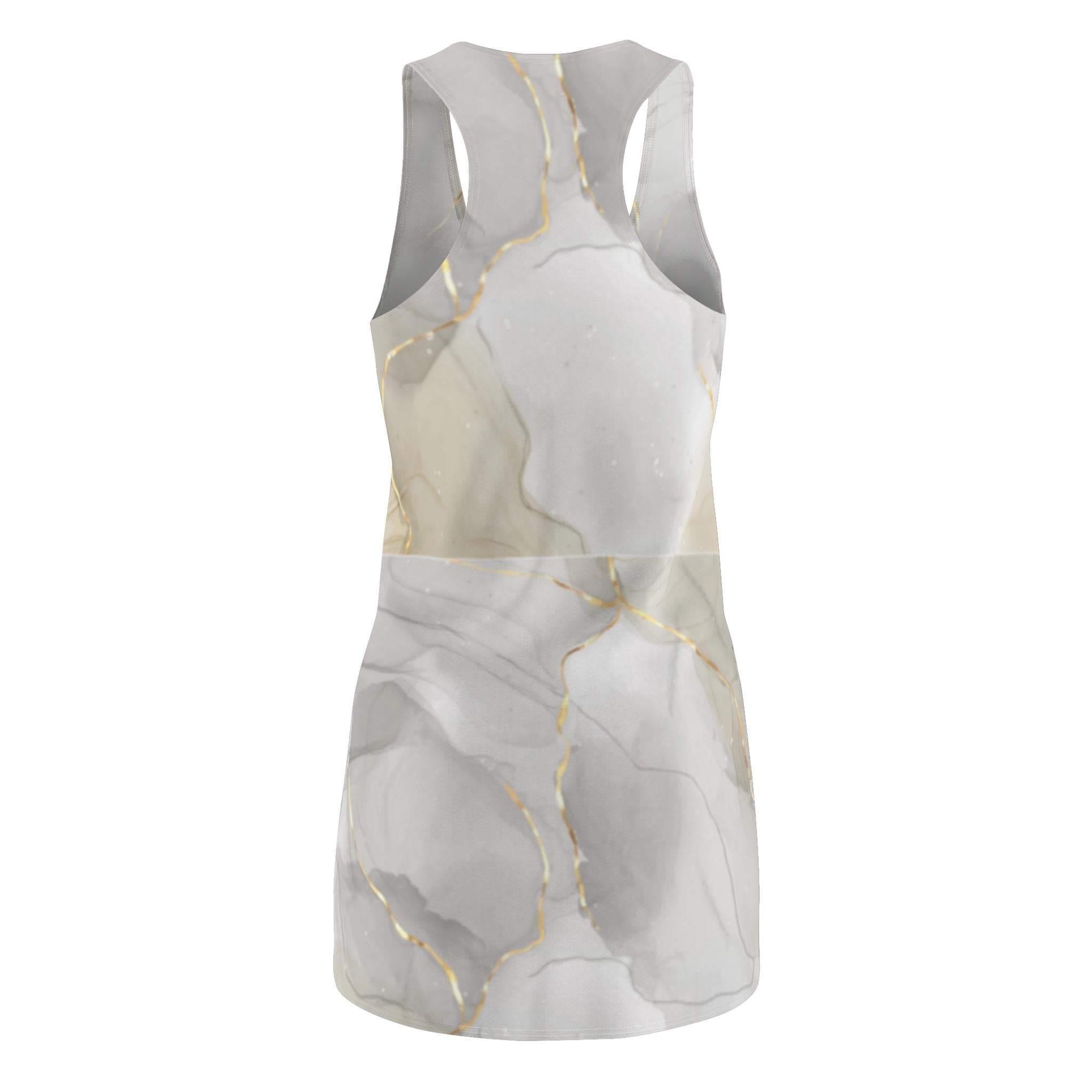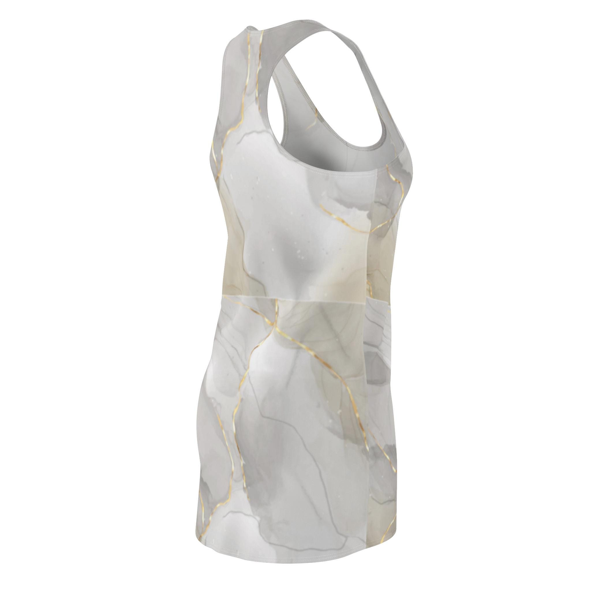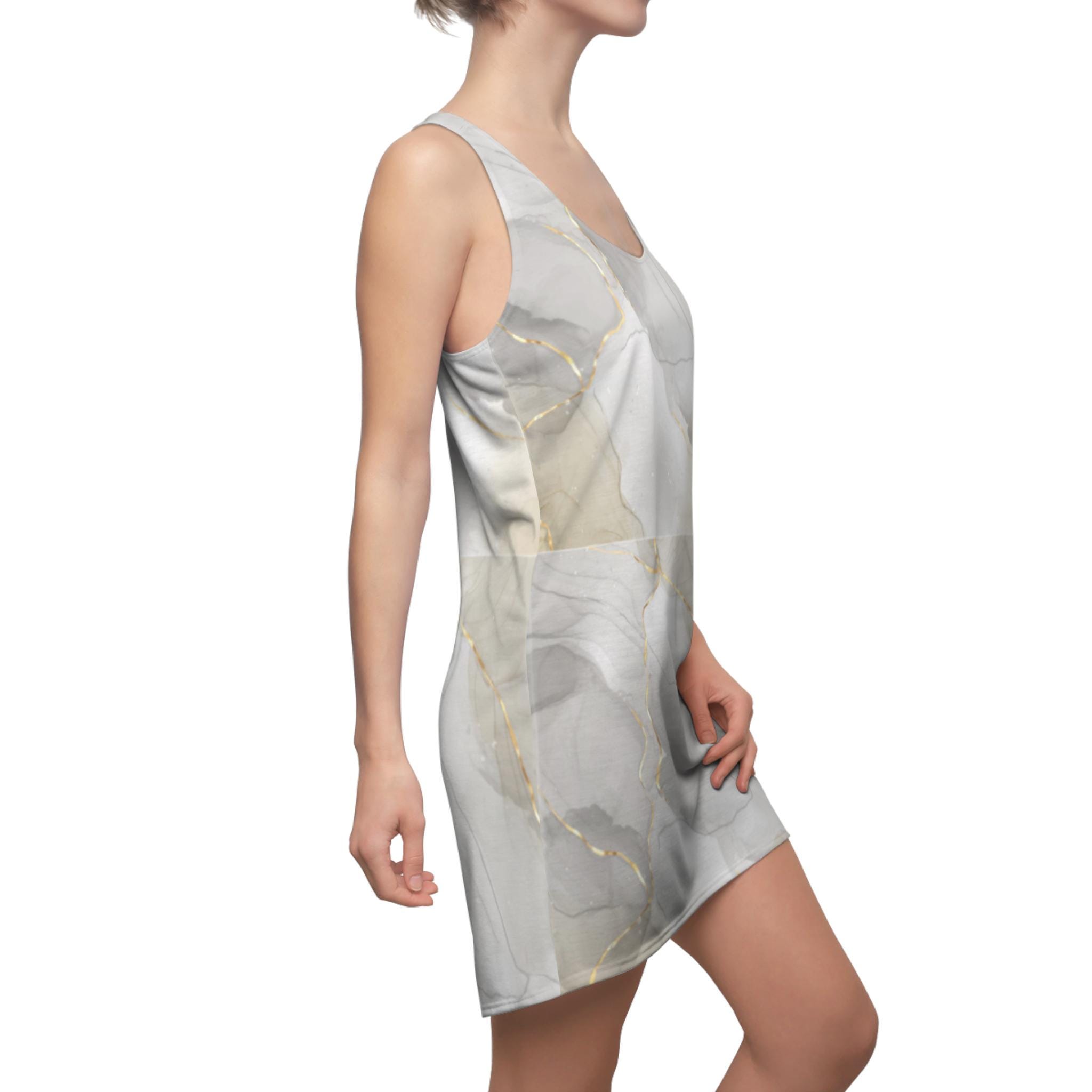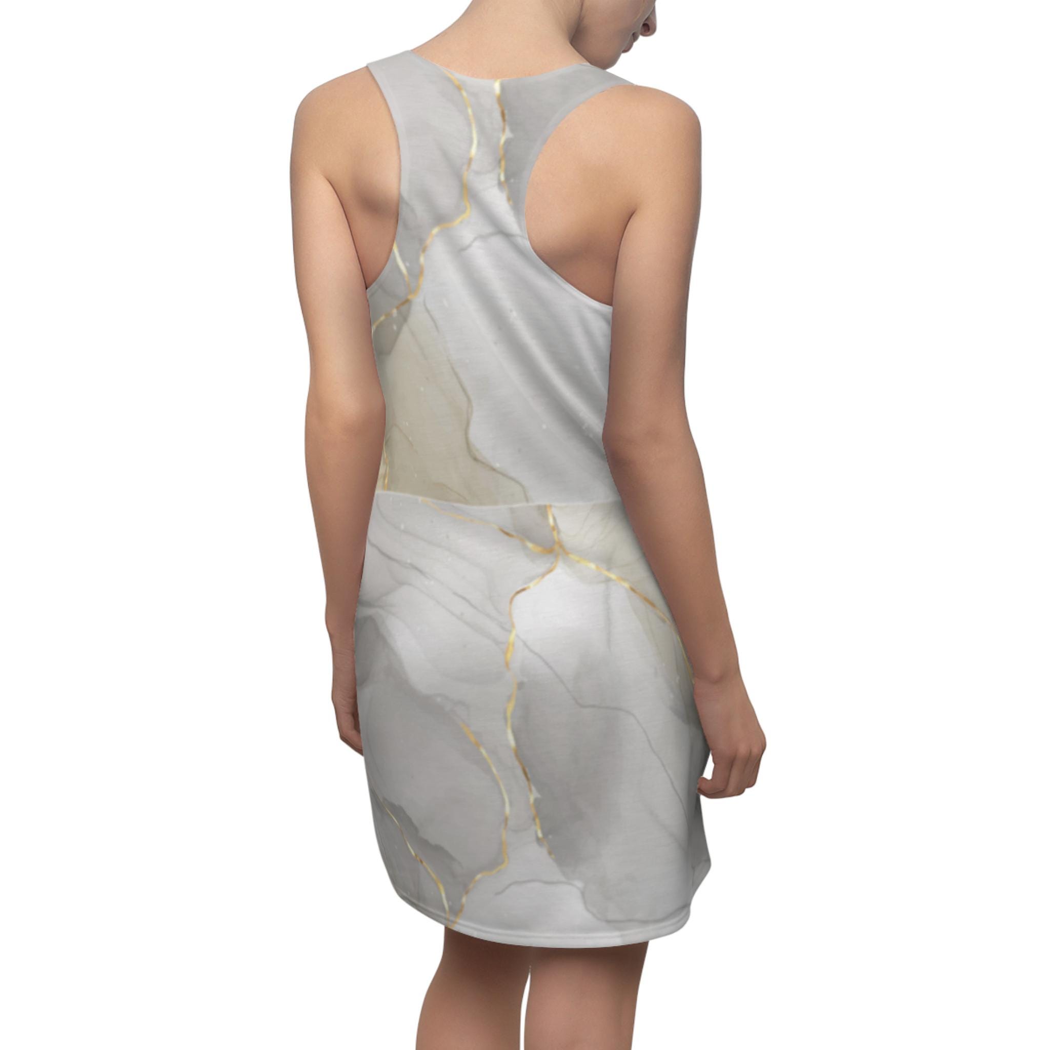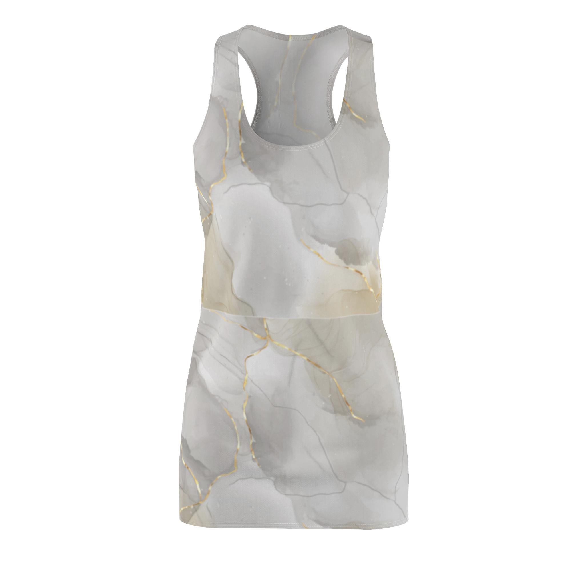 This racerback dress blends athleisure ease with soft, marble-inspired elegance. Lightweight and breathable, its muted stone swirls and subtle gold veining create a calm, refined look that moves from morning coffee to an evening stroll. The sporty silhouette skims the body without clinging, letting the marble pattern be the focus while offering freedom of movement. Wear it layered with a denim jacket for city outings or alone on warm days when you want something both relaxed and quietly sophisticated.